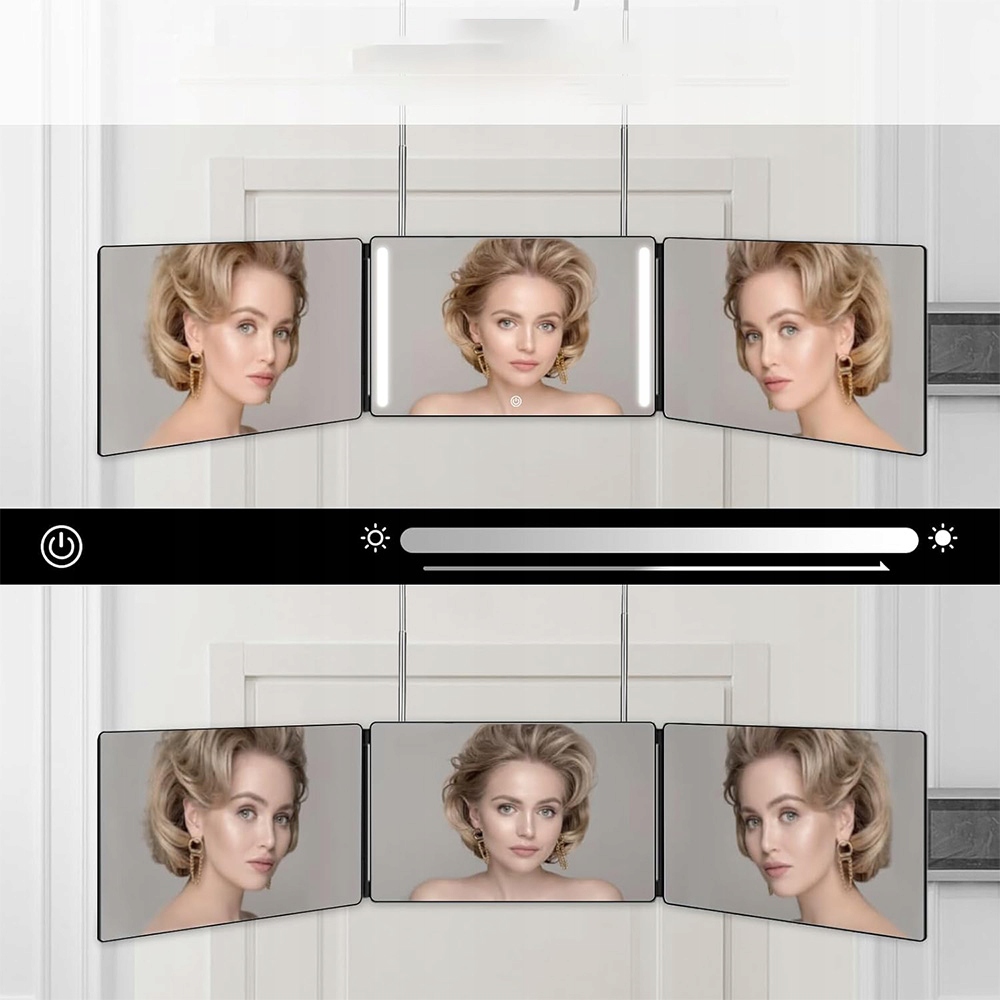 С помощью трехстороннего зеркала со светодиодами вы можете видеть переднюю, боковую и даже затылочную часть головы, четко видеть каждый ее уголок и создать идеальную прическу и макияж.