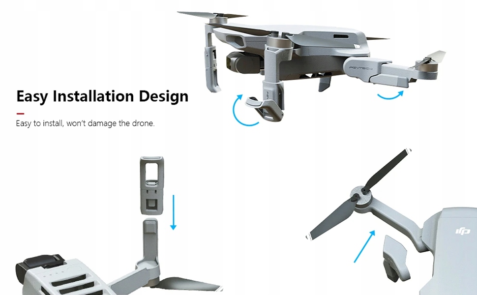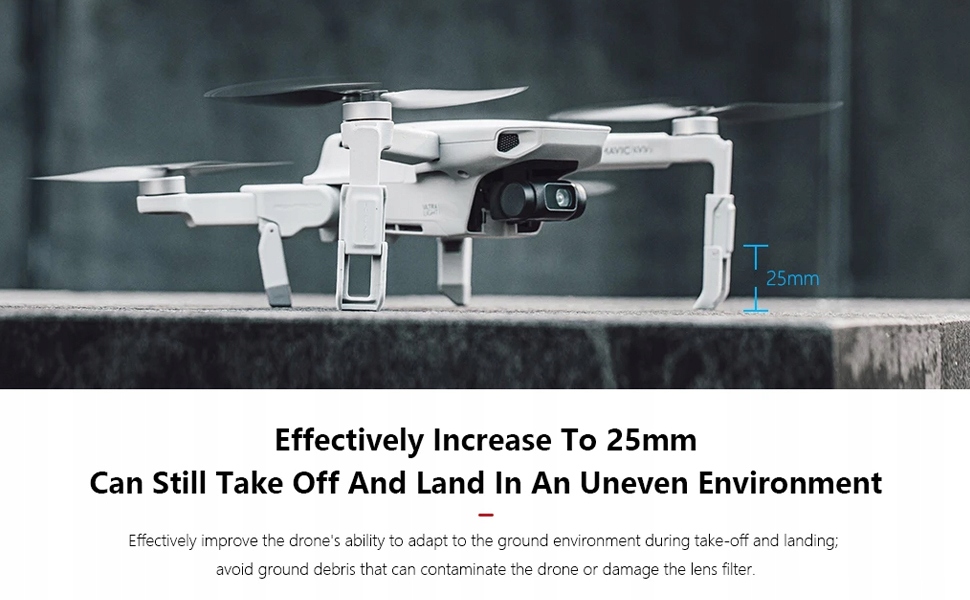 Расширения шасси легко устанавливаются и быстро снимаются. Пряжка, предотвращающая отсоединение, и мягкая резина ТПУ предотвращают соскальзывание дрона.