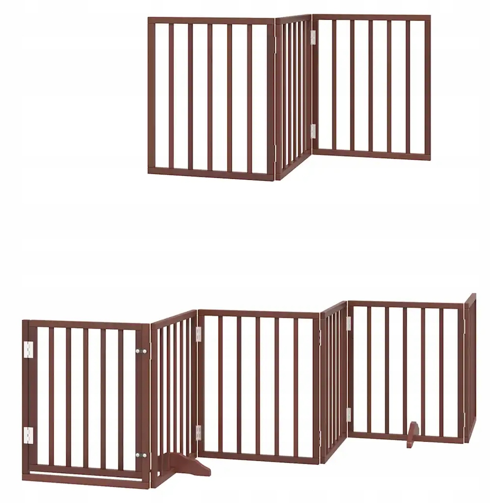 Ворота для собак складные, с дверцей, 9 панелей, коричневые, 450 см