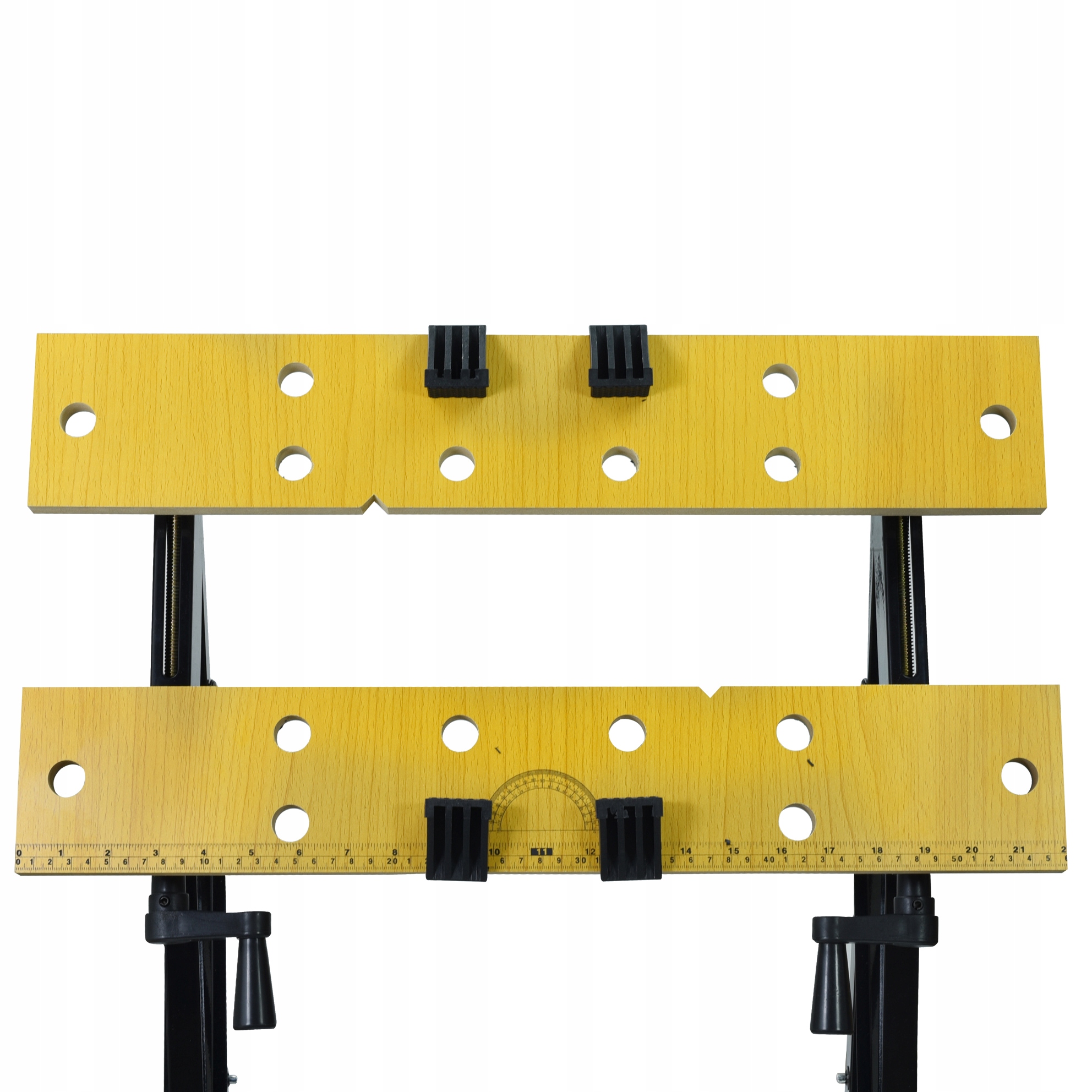 Складной верстак грузоподъемностью 100 кг — практичное решение для людей, которым нужна устойчивая рабочая поверхность, но ограниченное пространство в мастерской, гараже или студии. Стальная рама обеспечивает прочность и устойчивость. Он сконструирован таким образом, что его можно легко складывать и раскладывать. Столешница изготовлена из прочного материала – МДФ. Он разделен на две секции, которые можно соединять или отделять друг от друга с помощью кривошипно-шатунного механизма. В столешнице просверлены отверстия, в которые можно вставить ручки, облегчающие сжимание и удерживание обрабатываемых материалов или предметов, над которыми производятся работы. Стол спокойно выдерживает нагрузку до 100 кг, чего достаточно для большинства работ в мастерской.