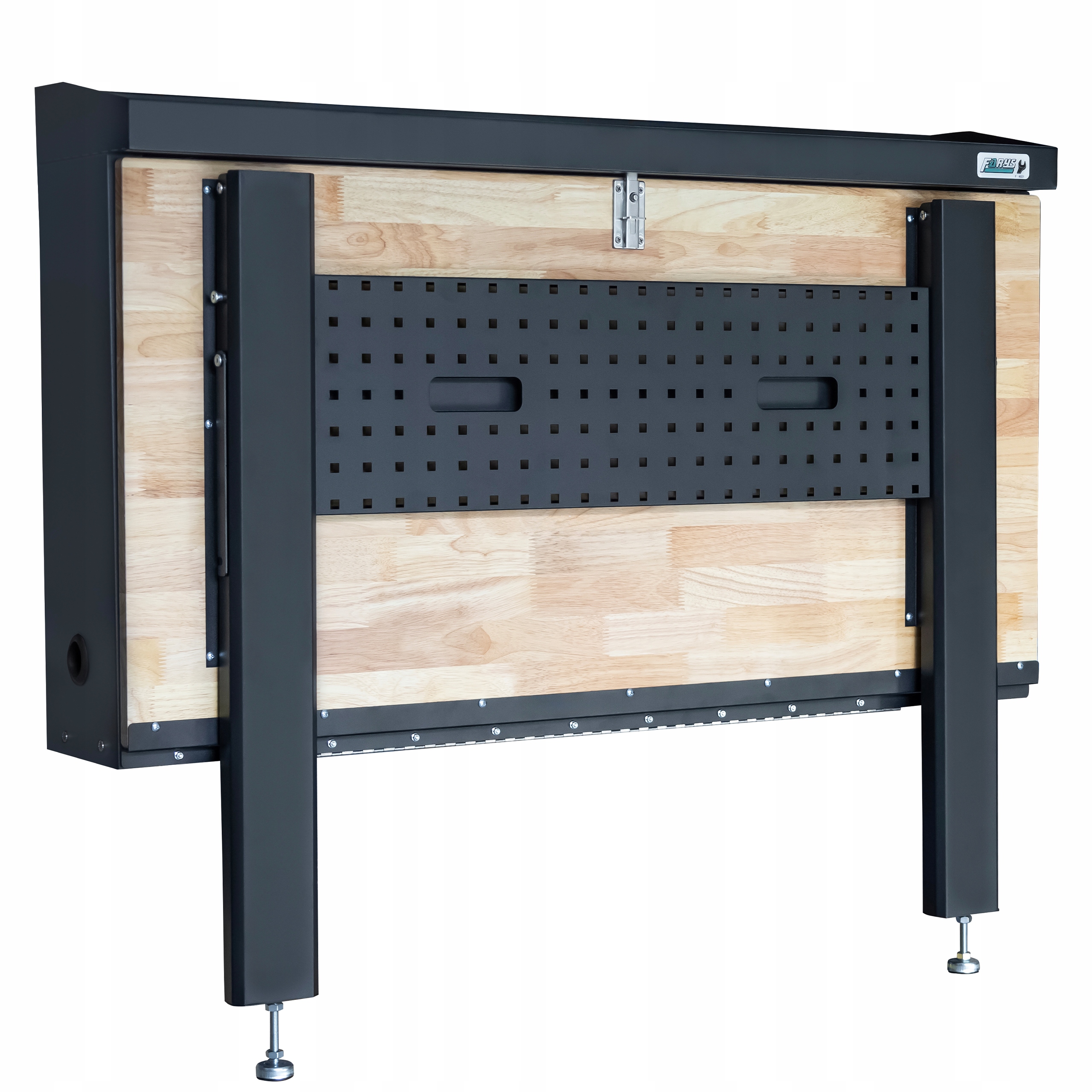 Комплект В комплект входит: подвесной шкаф с перфорированной доской для инструментов, деревянная столешница, светодиодный светильник и 15 крючков (14 одинарных и 1 двойной), что гарантирует полную функциональность.