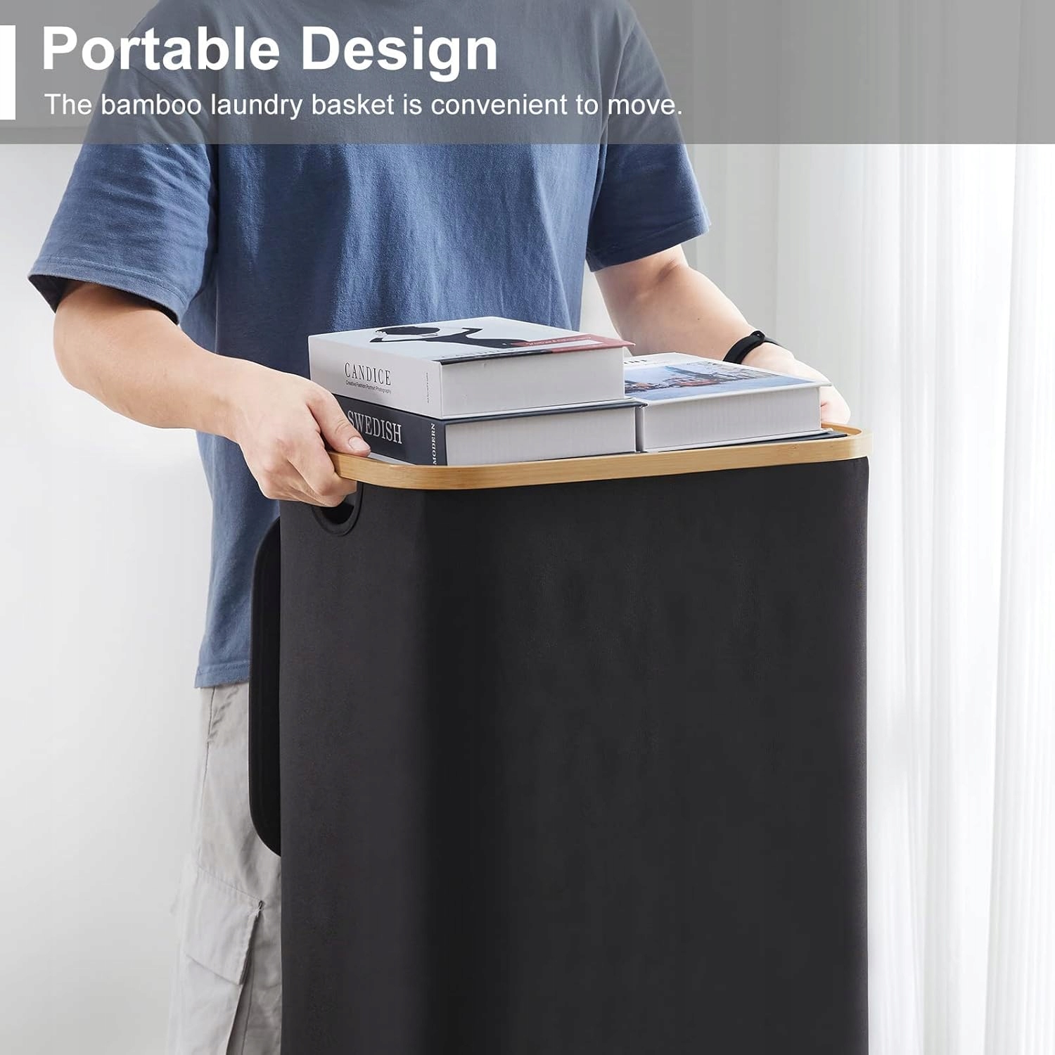КОРЗИНА ДЛЯ БЕЛЬЯ ОБЪЕМОМ 85 Л, СКЛАДНАЯ С КРЫШКОЙ И УЗКОЙ БАМБУКОВОЙ СУМКОЙ