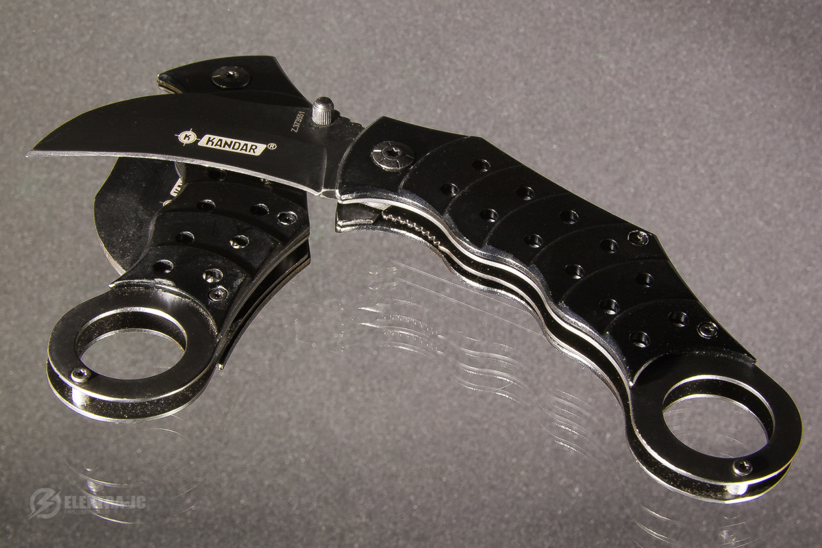 Складной нож по образцу индонезийских ножей керамбит, используемых для самообороны.