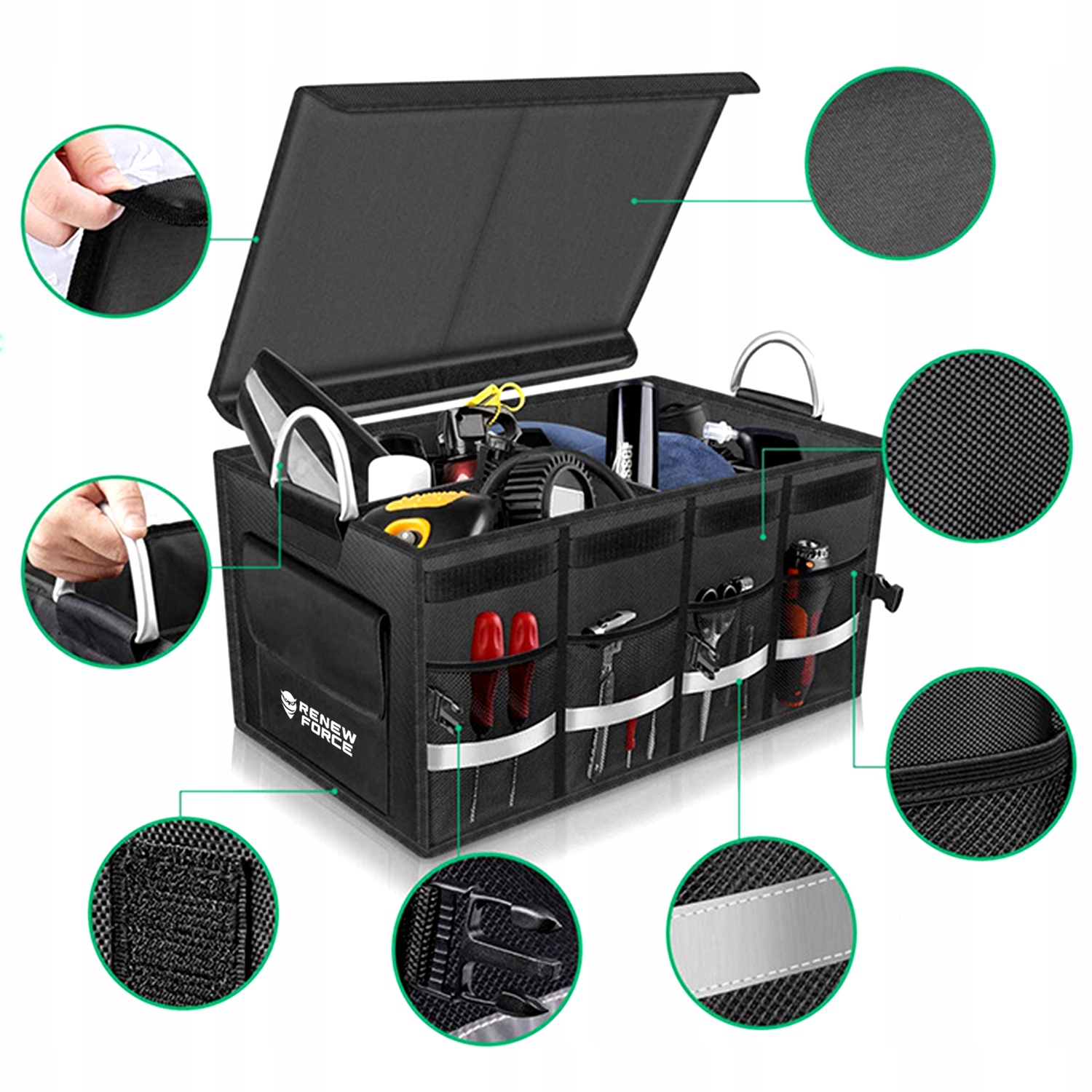 Практическая сумка для багажника вашего автомобиля поможет вам организовать пространство в автомобиле — идеально подходит для инструментов, покупок и многого другого! Жесткая и устойчивая конструкция гарантирует, что все вещи останутся на своих местах даже при резких маневрах на дороге.