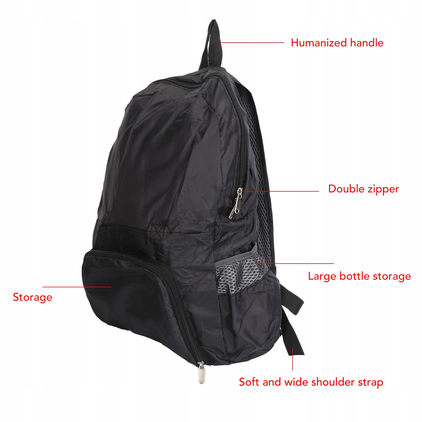 1. Удобный и легкий: черный складной рюкзак складывается в сверхкомпактную сумочку, которая легко помещается в ваш багаж в качестве дополнительной дорожной сумки.