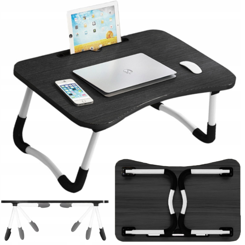 Компактный стол для компьютера или планшета. Идеально подходит для работы и игр дома или в путешествии. Он позволяет комфортно использовать ноутбук или другое устройство практически в любых условиях. В сложенном виде он занимает мало места, его можно легко спрятать, например, под кровать и всегда иметь под рукой. Оснащен профилированным углублением для планшета или телефона. Вы также можете перетащить зарядное устройство и заряжать эти устройства во время их использования. Мягкая нескользящая защита ног повышает устойчивость и защищает стол.