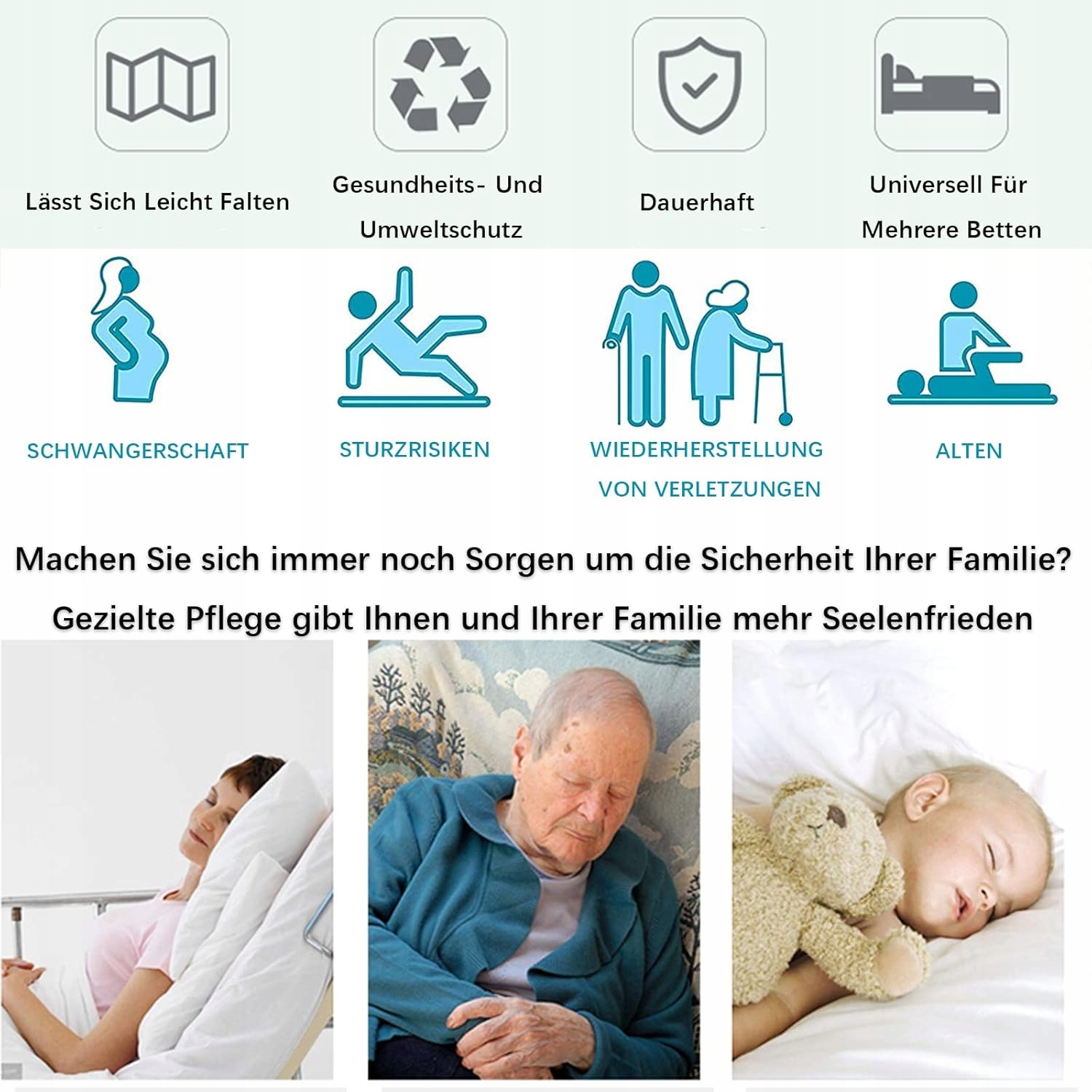 Складная конструкция: продукт отправляется с одной кнопкой, которая позволяет вам складывать или разворачиваться с одним нажатием. Это удобно и сохраняет работу, и операция проста; Размеры после развертывания: 70 х 40 см, расстояние: 23 см, размеры после складывания: 100 x 13 см; Операция очень дружелюбна. После установки проверьте стабильность установки, чтобы обеспечить более безопасное использование. Легкая сборка: этот продукт представляет собой поручни для монтажа без отверстий, оснащенный типом с подключаемой пластиной, установкой без отверстий, простой сборкой и затяжкой винтов; Тип с типом Z имеет высоту 8 см и подходит для подушек шириной 5-10 см. Широкий спектр приложений: благодаря современным концепциям дизайна этот продукт может быть интегрирован с различными стилями комнат. Он совместим с большинством типов кроватей, но не подходит для регулируемых кроватей. Подходит для пожилых людей, пациентов, беременных женщин, инвалидов, детей и т. Д. Это обеспечивает твердую защиту в общественных местах.