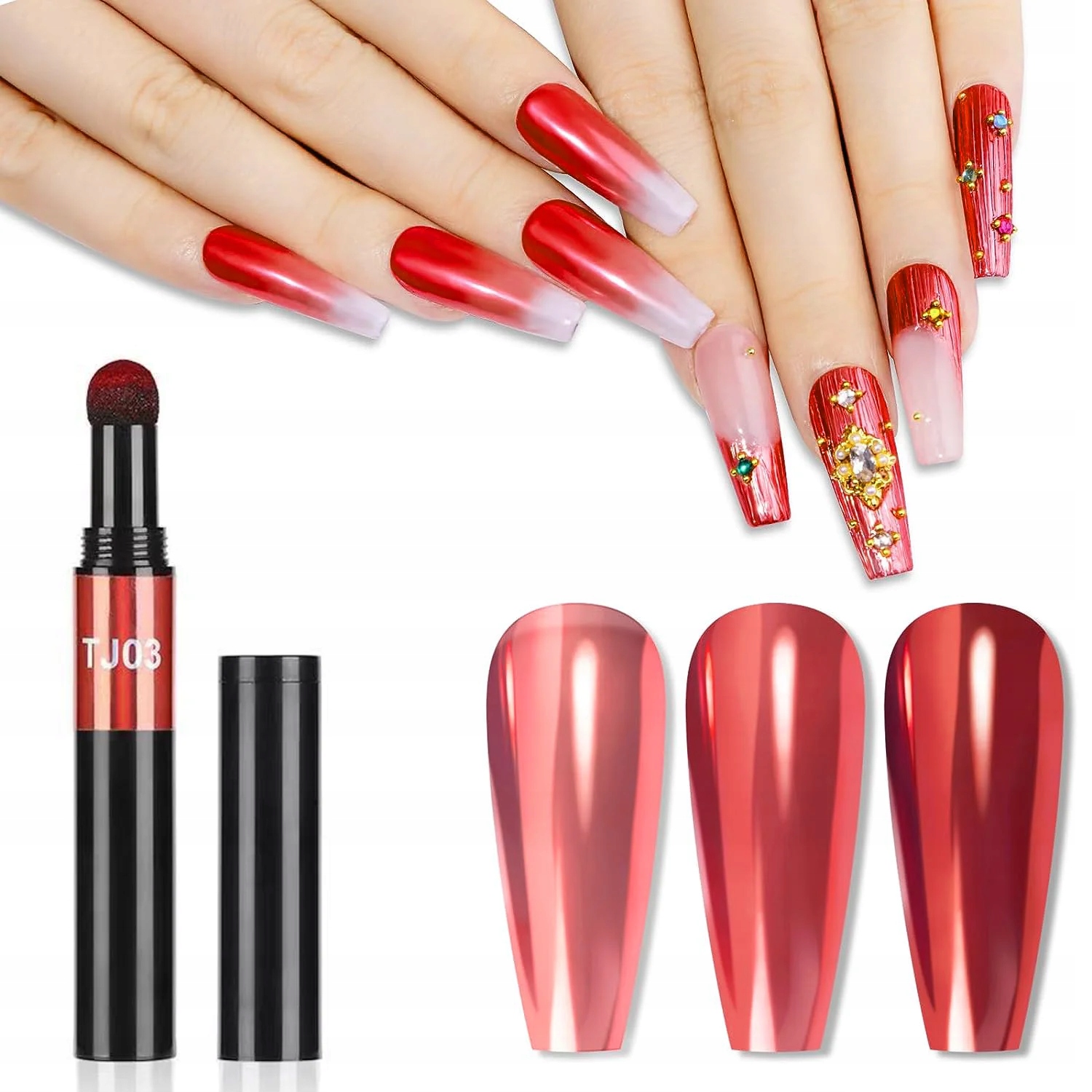 ПУДРА ДЛЯ НОГТЕЙ С ЗЕРКАЛЬНЫМ ЭФФЕКТОМ В РУЧКЕ - ХРОМНЫЙ ЭФФЕКТ, ЗЕРКАЛЬНЫЙ ЭФФЕКТ КРАСНЫЙ