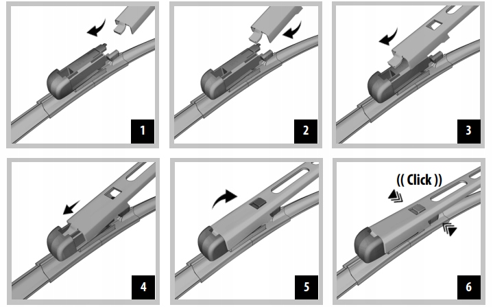 Установка дворников проста и интуитивно понятна — достаточно следовать инструкциям на прилагаемом фото.