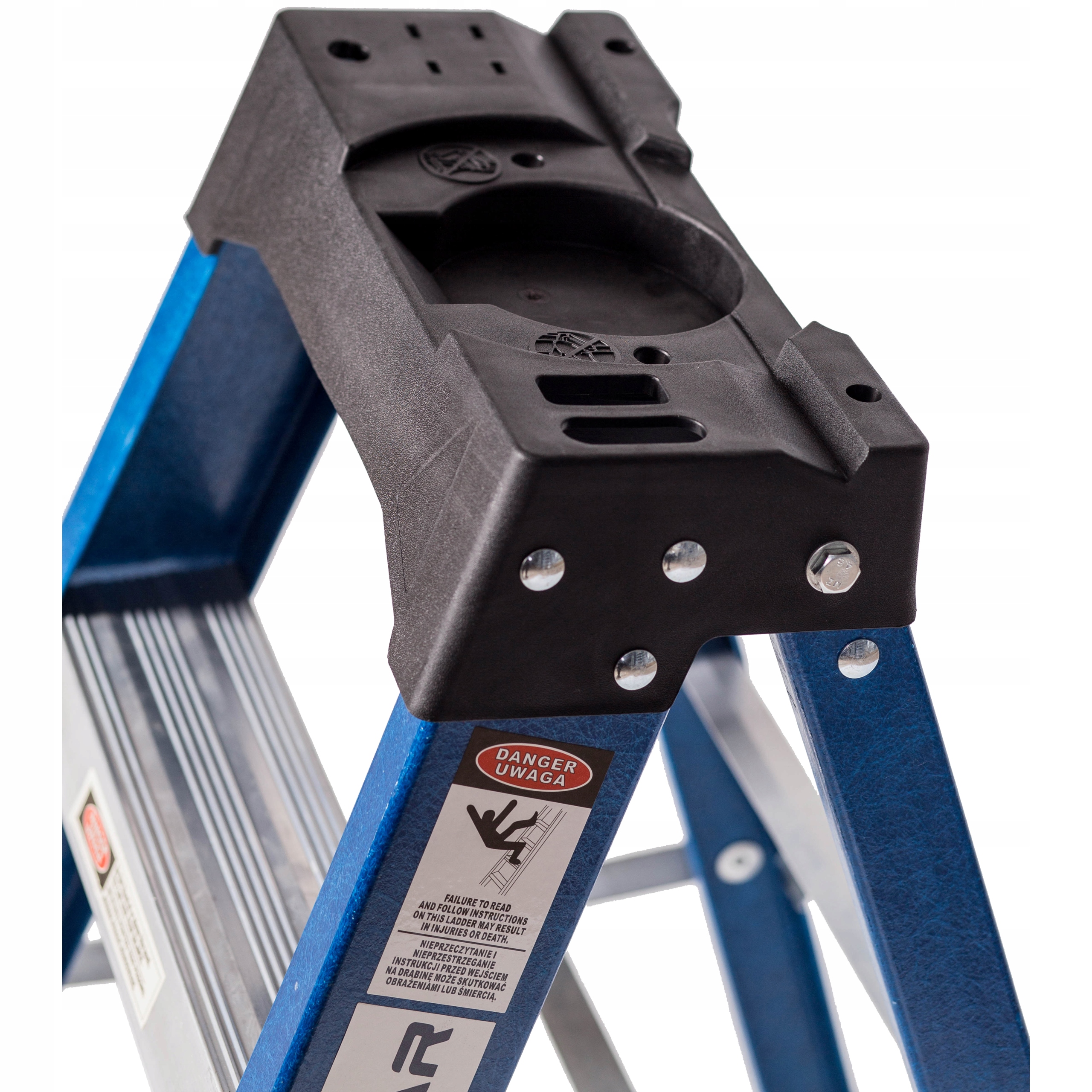 - Самая высокая ступенька в виде полки для инструментов - не предназначена для стояния.