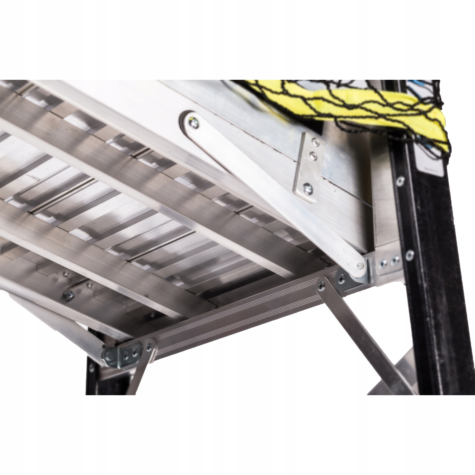 - Лестница оснащена самоблокирующимся шарниром для обеспечения максимальной безопасности.