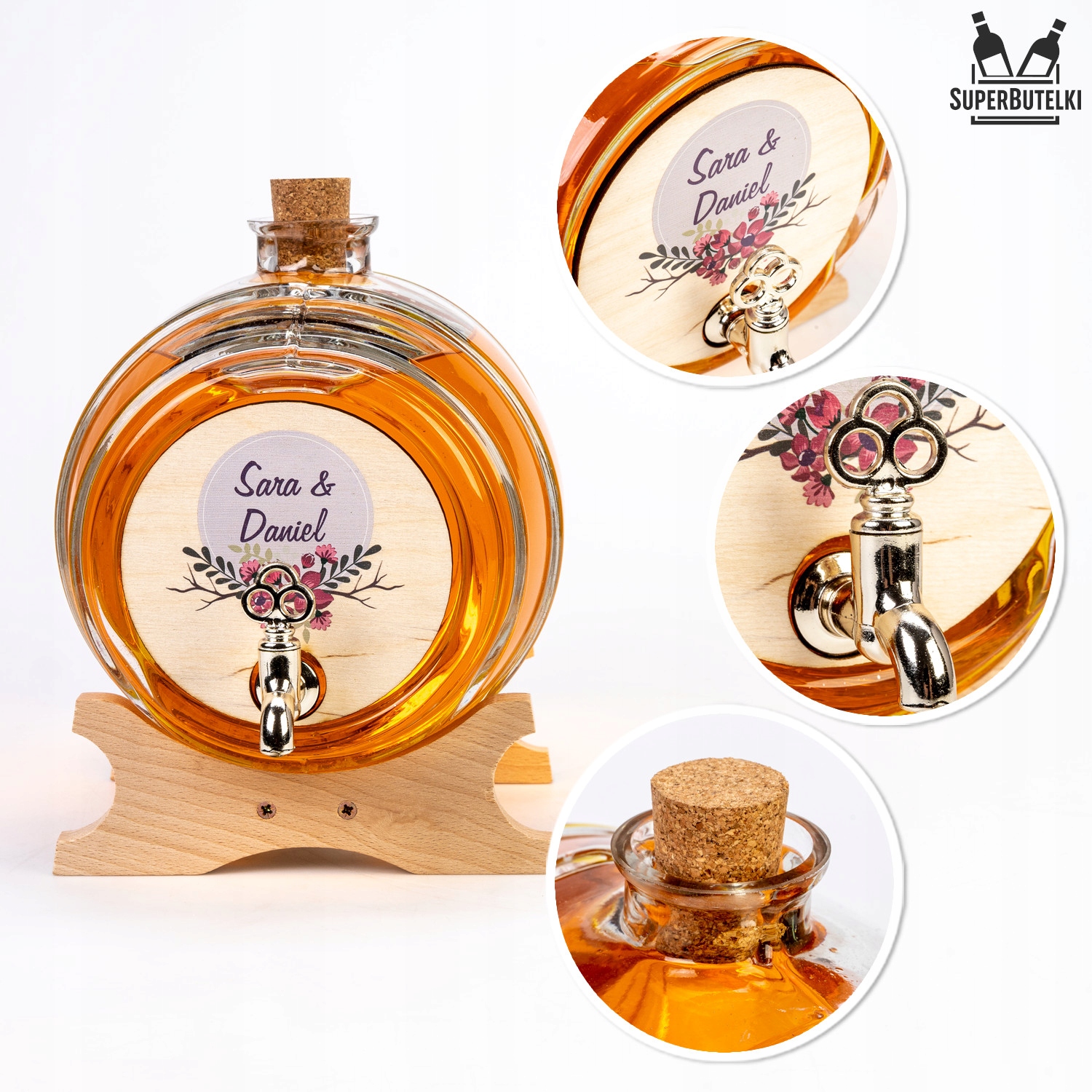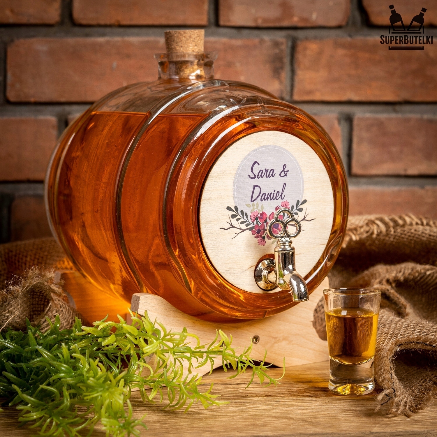 Стеклянная бочка, графин 4 л с краном, подставка и печатная тарелка для алкоголя, самогона, водки, ликеров, виски, на подарок