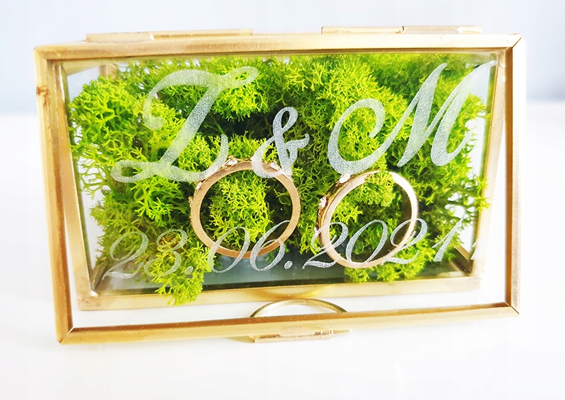 Скляна коробка обручок.Імена дата гравірування мох