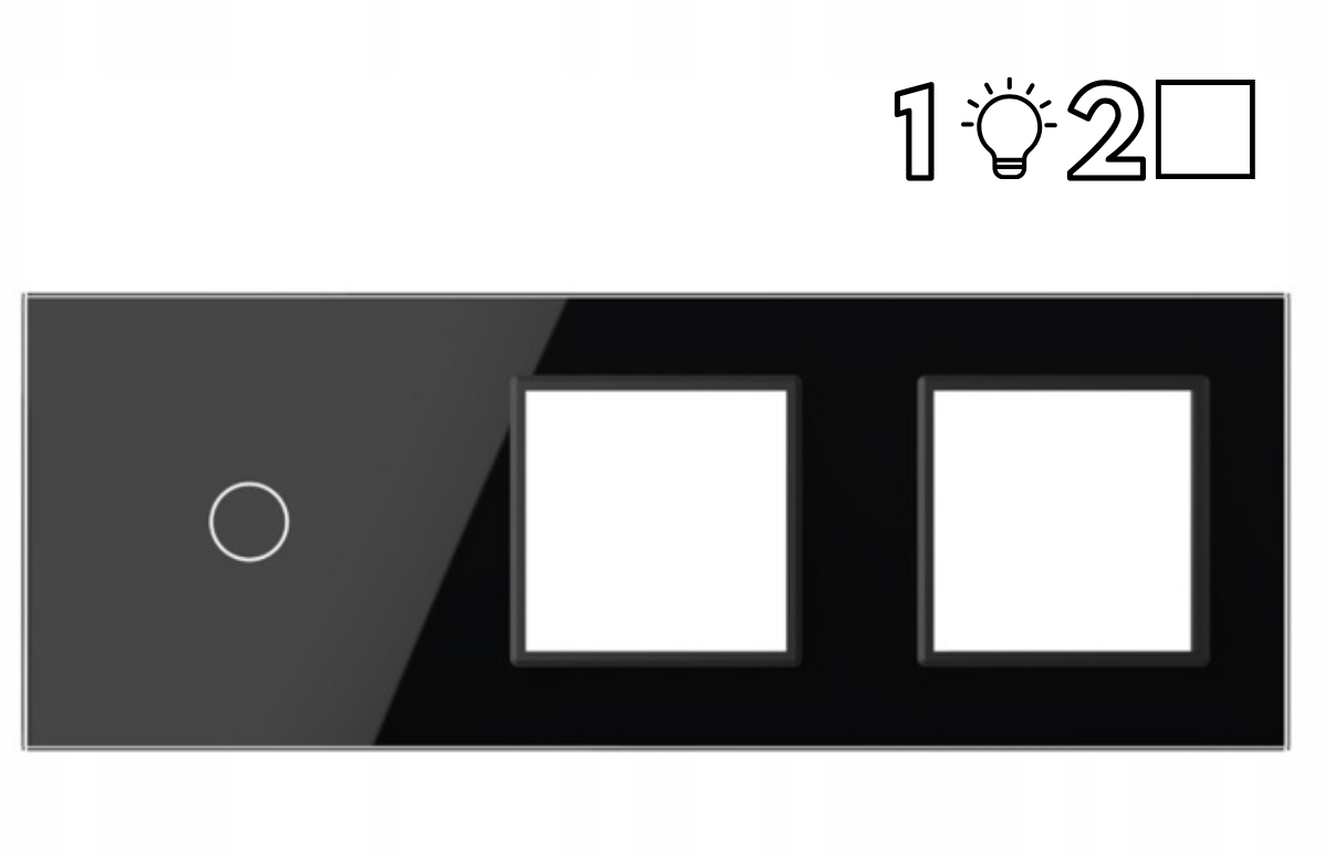 СТЕКЛЯННАЯ ПАНЕЛЬ ДЛЯ СЕНСОРНЫХ МОДУЛЕЙ ДВОЙНАЯ РАМКА 1G+2F РОЗЕТКА ЧЕРНАЯ