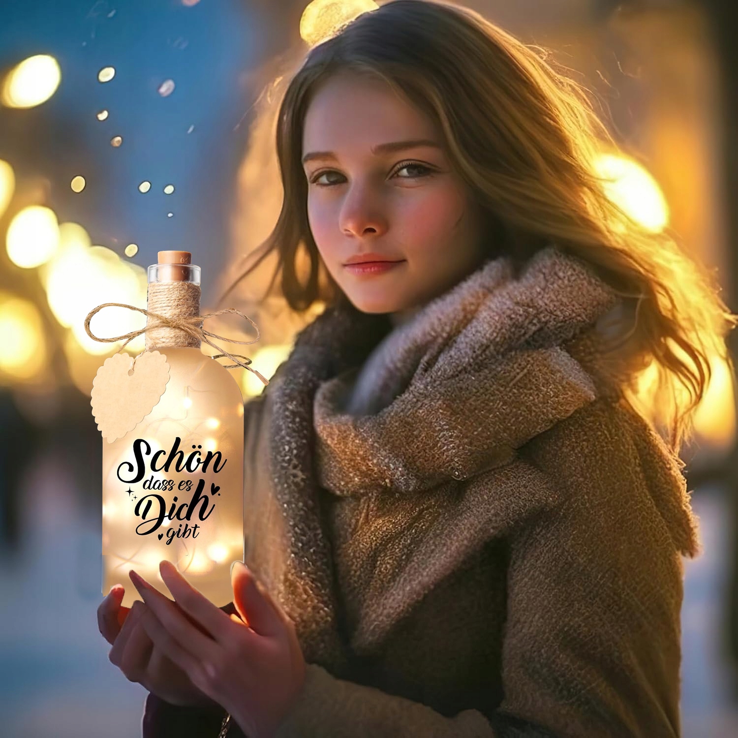 «Schön, dass es Dich gibt» (Приятно, что вы здесь) – стеклянная бутылка, украшение со светодиодной подсветкой