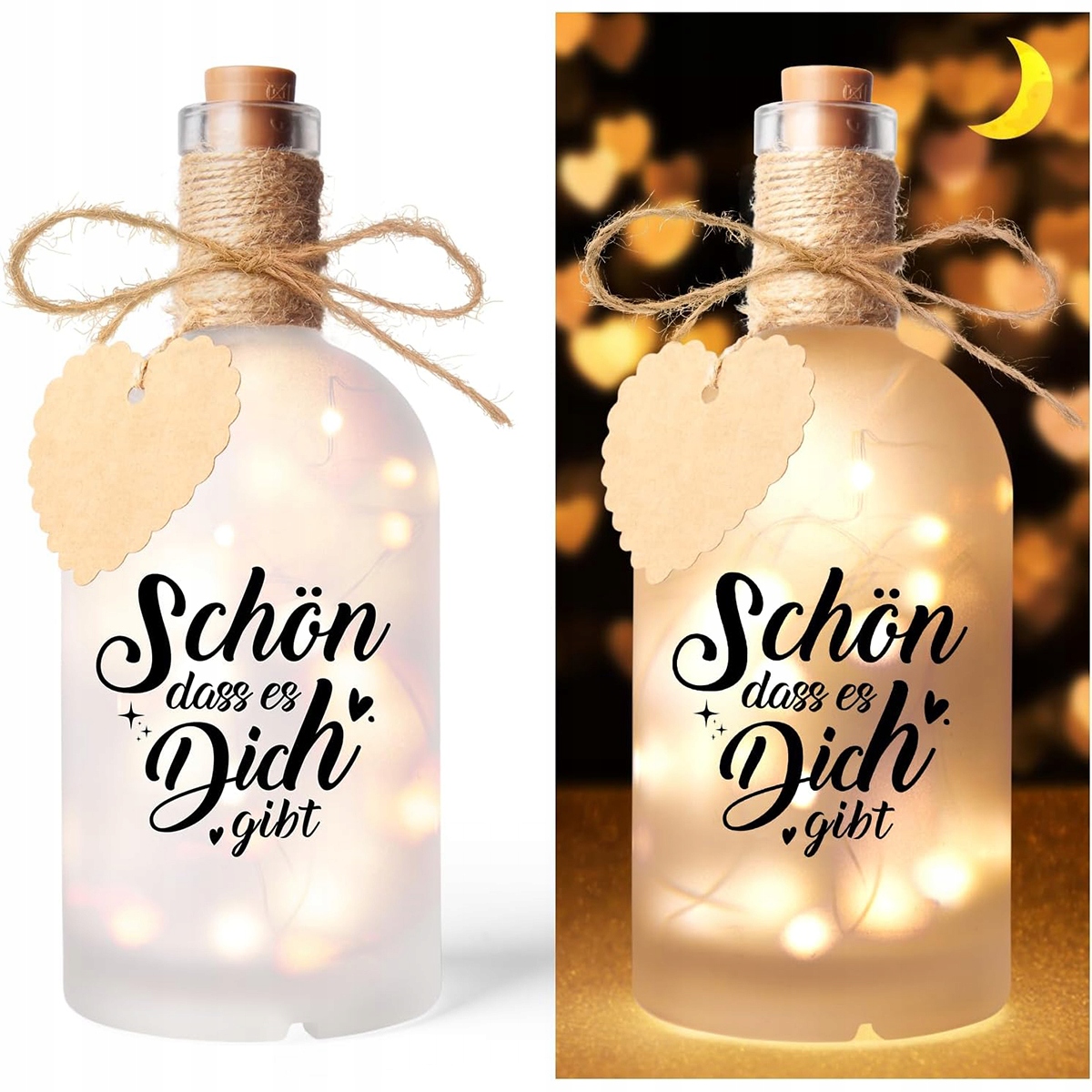 В начале вы получаете элегантный флакон с нежной надписью, безопасный теплый белый свет и простоту использования — достаточно вставить кабель или заменить аккумулятор. Я постепенно создаю ценность: светодиодная цепочка помещается в бутылку, световая трубка освещает внутреннее пространство, а подвеска с предложением позволяет придать подарку индивидуальность - устраняет подарочные дилеммы и дарит воспоминания на долгие годы.