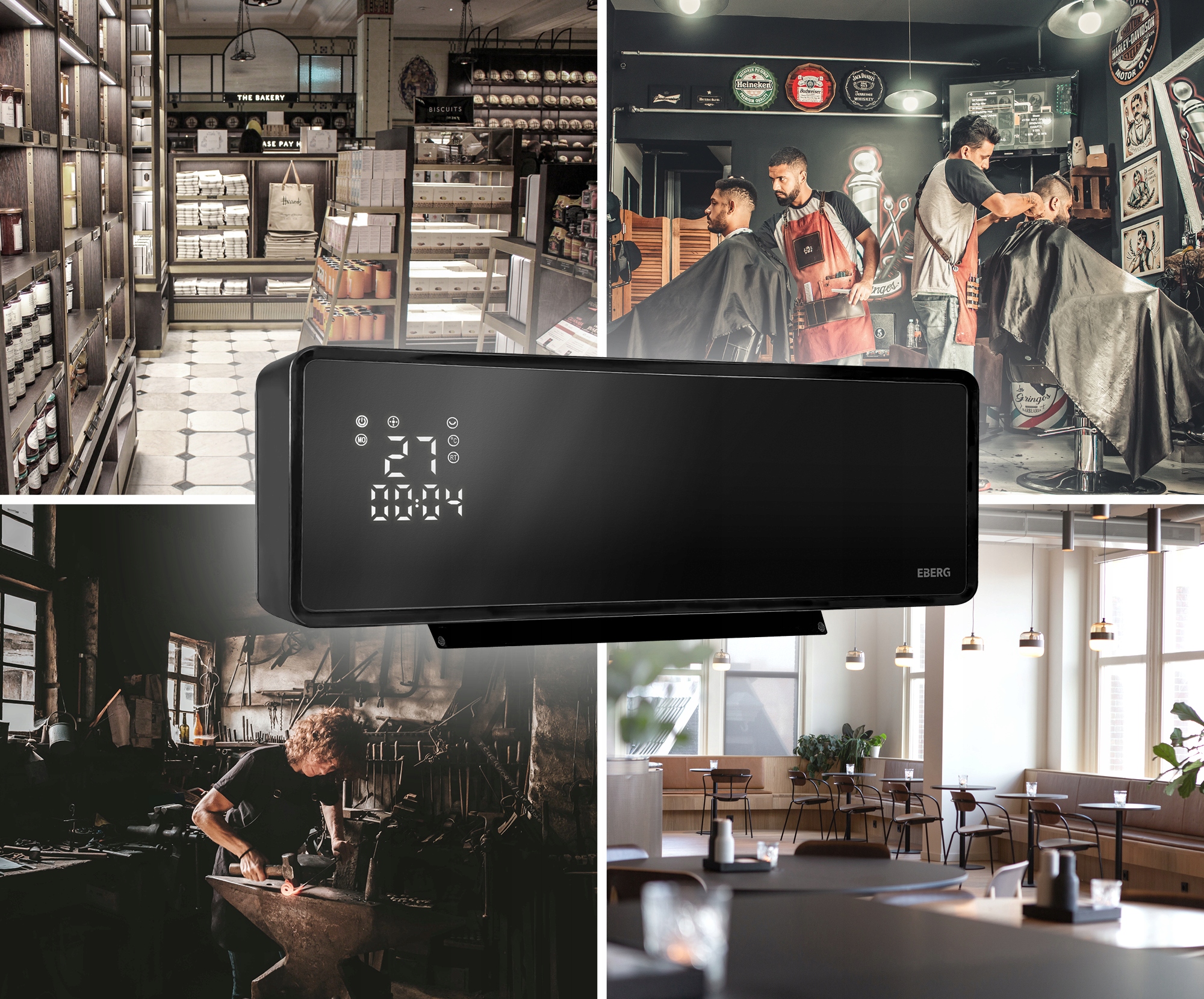 Стеклянная воздушная завеса EBERG Q4, 2 кВт, электрический нагреватель WiFi + пульт дистанционного управления