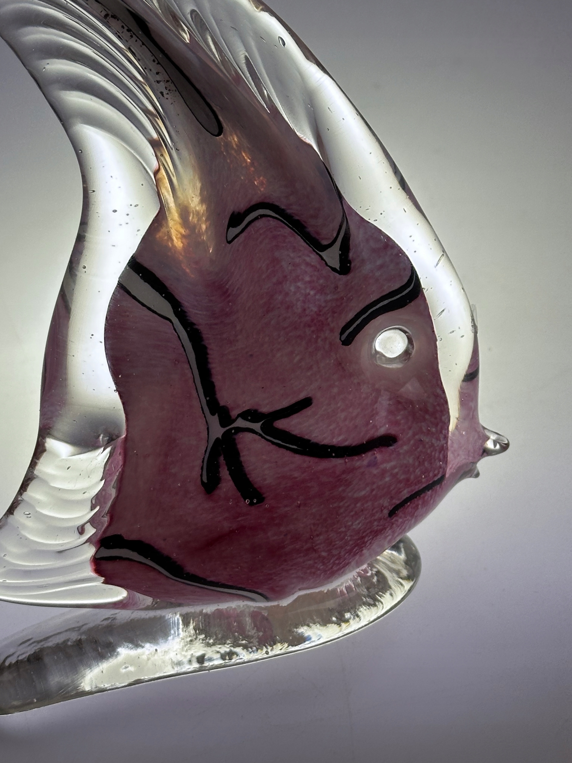 Скляна рибка ручної роботи, рожева, висота 15 см