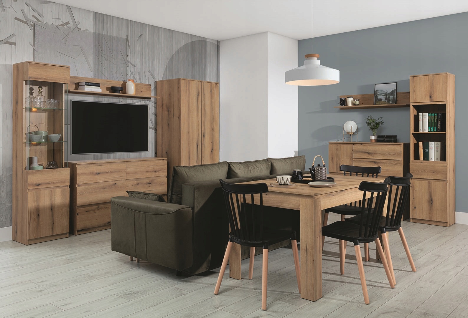 В состав системы входят: шкаф, комоды, тумба под телевизор, шкаф-витрина, полки, скамейки, стол, прикроватная тумбочка, туалетный столик с зеркалом, письменный стол, полки, тумба для обуви.