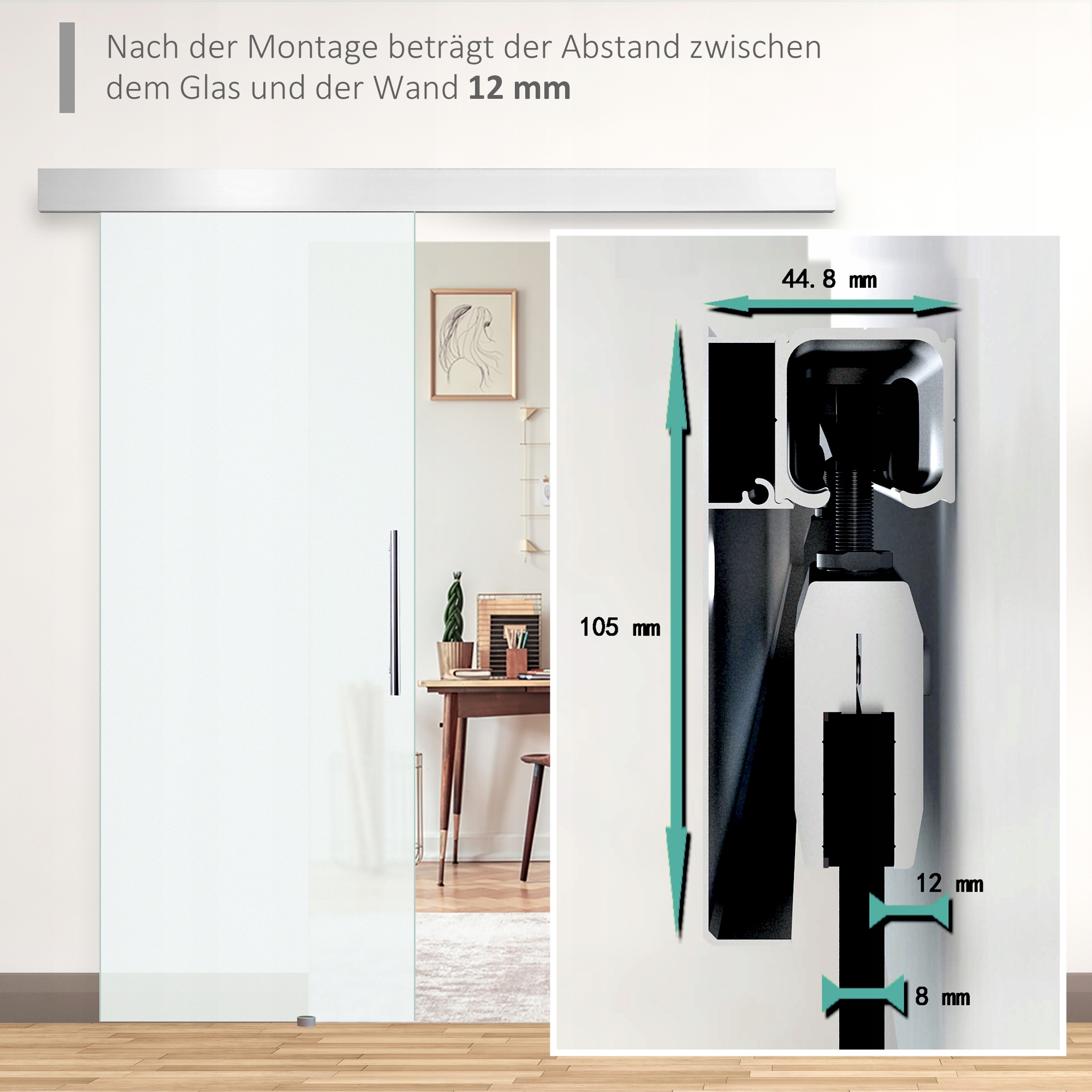 Дверь стеклянная раздвижная с алюминиевой системой, 90х205 см, полный монтажный комплект