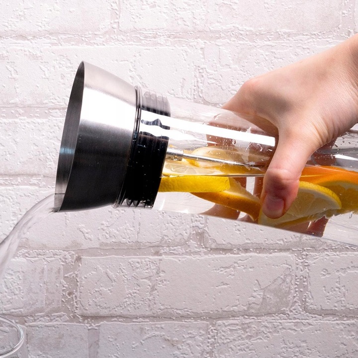✔ интегрированное сито останавливает фрукты, кубики льда в карафте