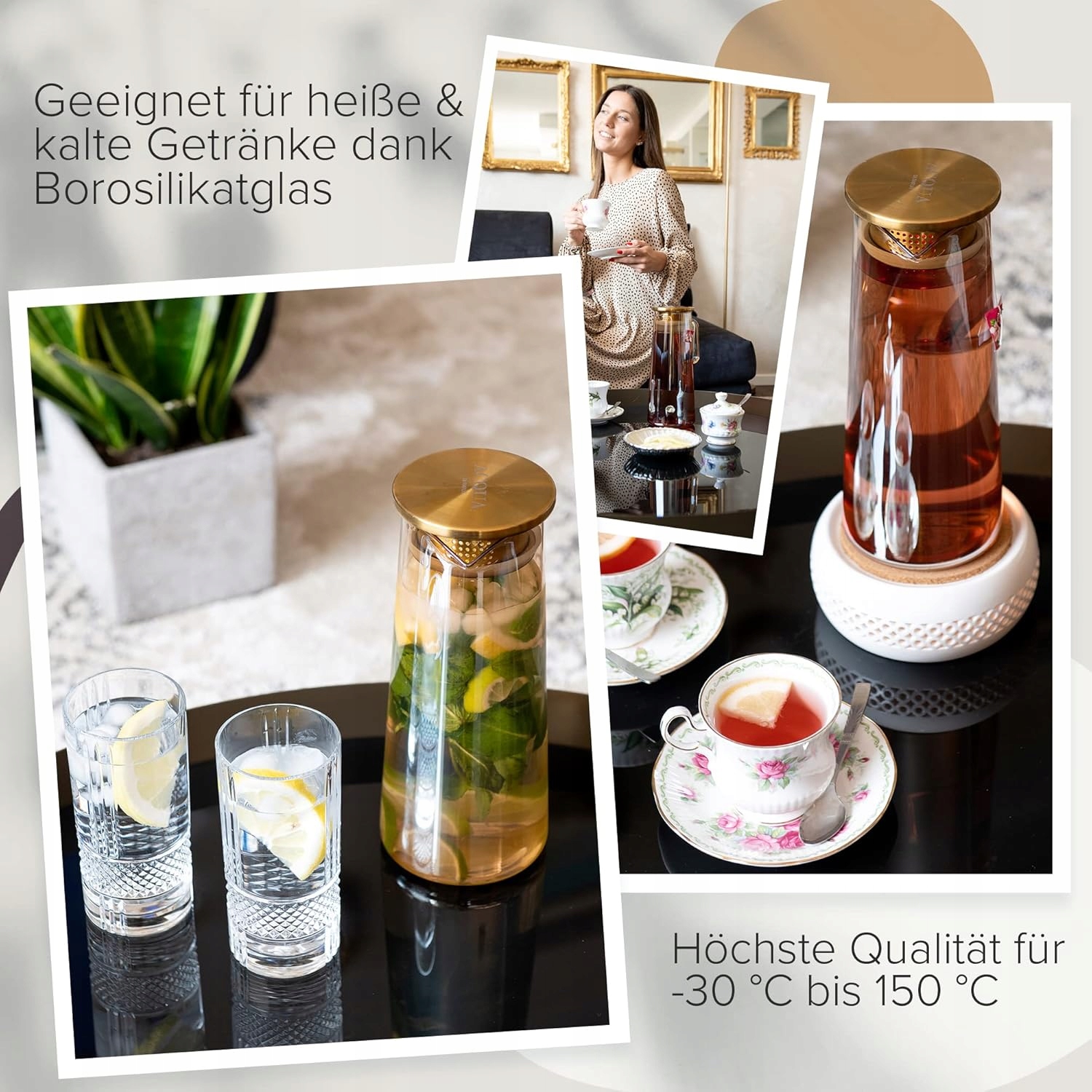 - Универсальный и практичный: этот 1,5 -литровый водный графин также подходит в качестве питьевого графического кара, чайного карафа или кувшина с водой с вставкой. Сделано из лучших материалов, которые обеспечивают длительное качество и элегантность