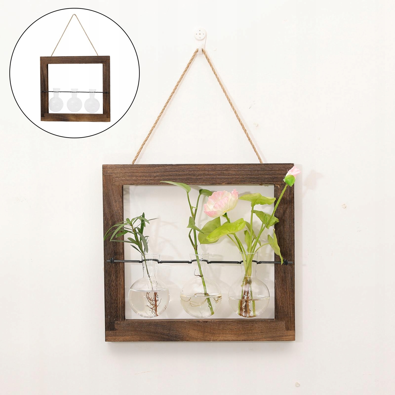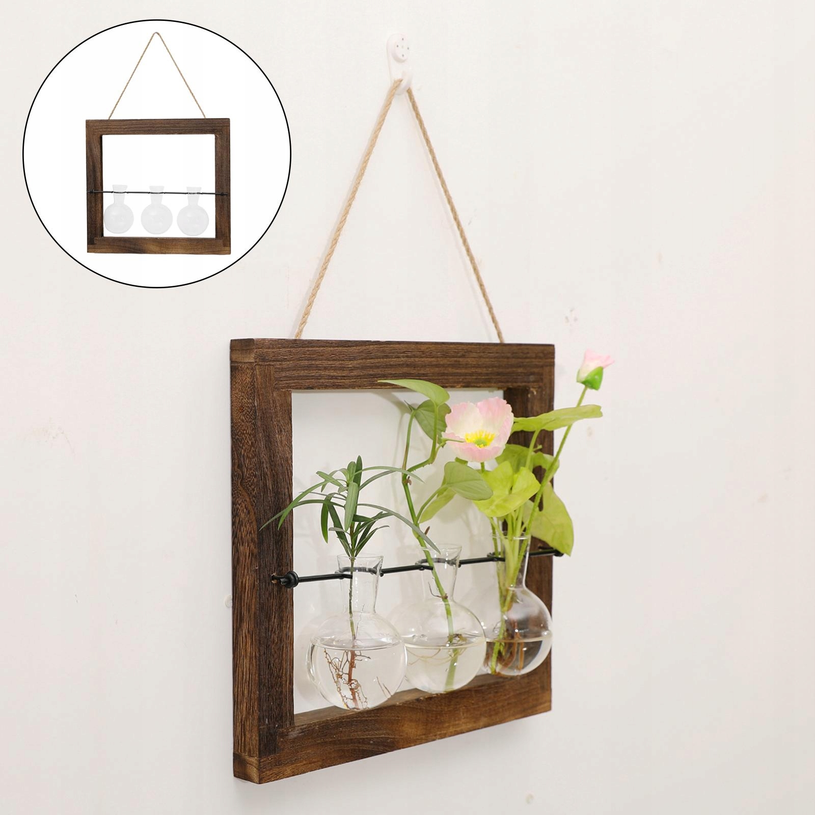 Гидропоническая ваза с петликой из стеклянной лампочки соединяется с деревянной рамой и висящим поводком - очень декоративным, элегантным и практическим