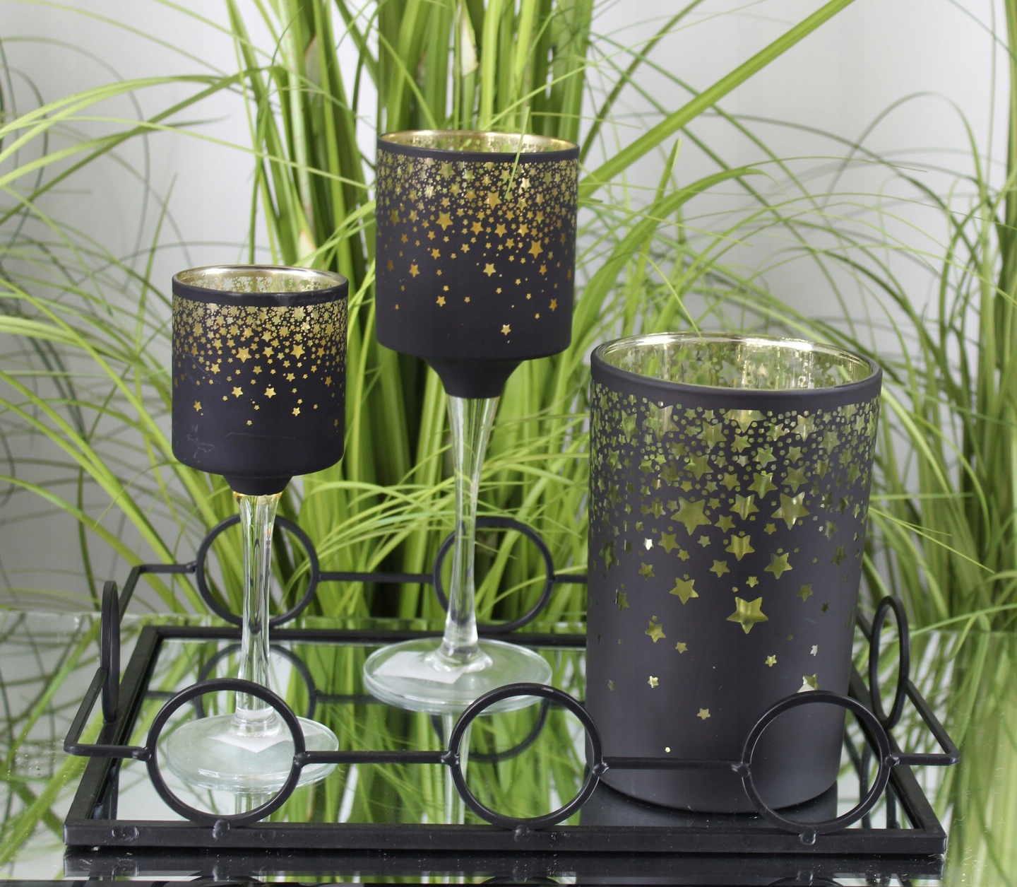 Скляний свічник золоті олені H12.5 DEcodomi