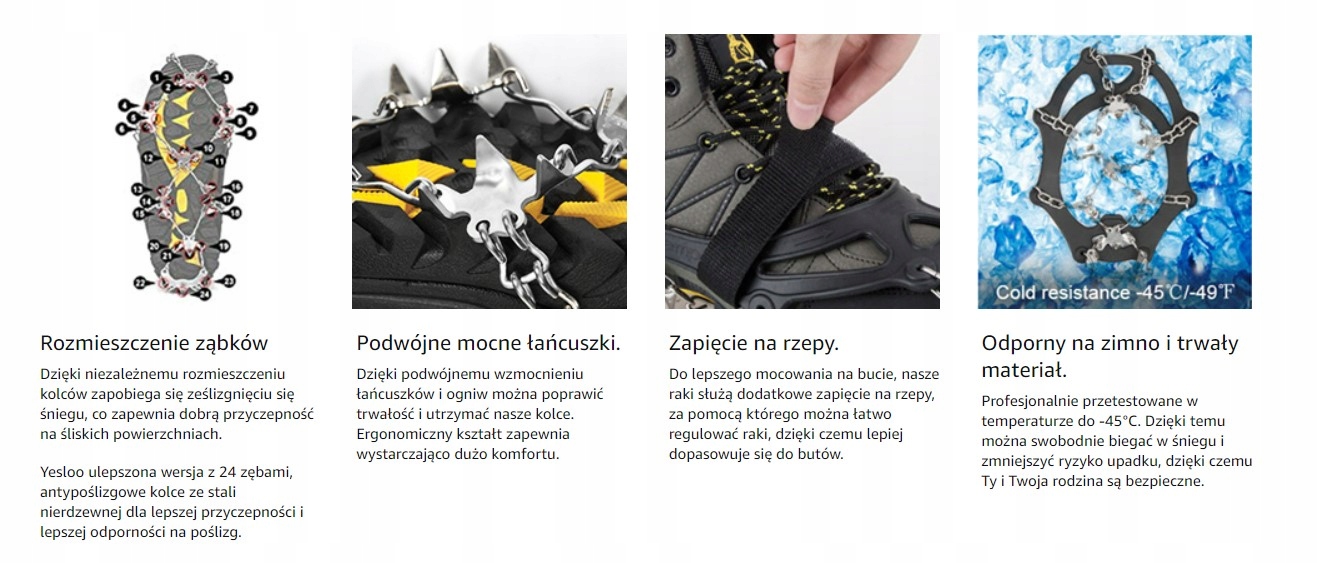 ✅ Усиленные кошки из нержавеющей стали с 24 зубьями и системой двойной цепи можно надежно прикрепить ко всем ботинкам. Эти цепи противоскольжения не ржавеют и подходят для езды по льду, снегу и скользкой дороге.