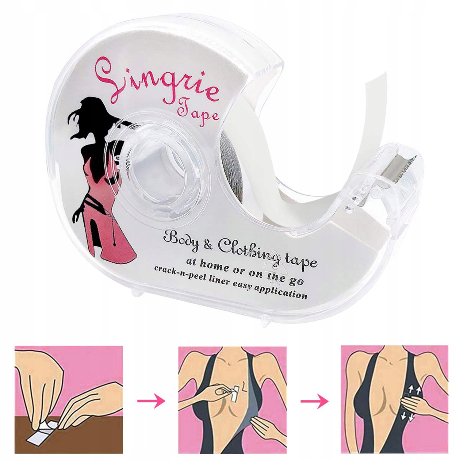Body Tape идеально подходит для одежды с глубоким вырезом, платьев с открытыми сторонами, топов с запахом, защиты ягодиц, промежутков для пуговиц, топов и недоуздков, манжет, шарфов, носков и украшений, бретелей бюстгальтера с открытым краем, подплечников, где вам нужно немного подправить, и это поможет избежать неловких взглядов. Их очень легко использовать и снимать. Это тот модный аксессуар, без которого не обойдется ни одна девушка.