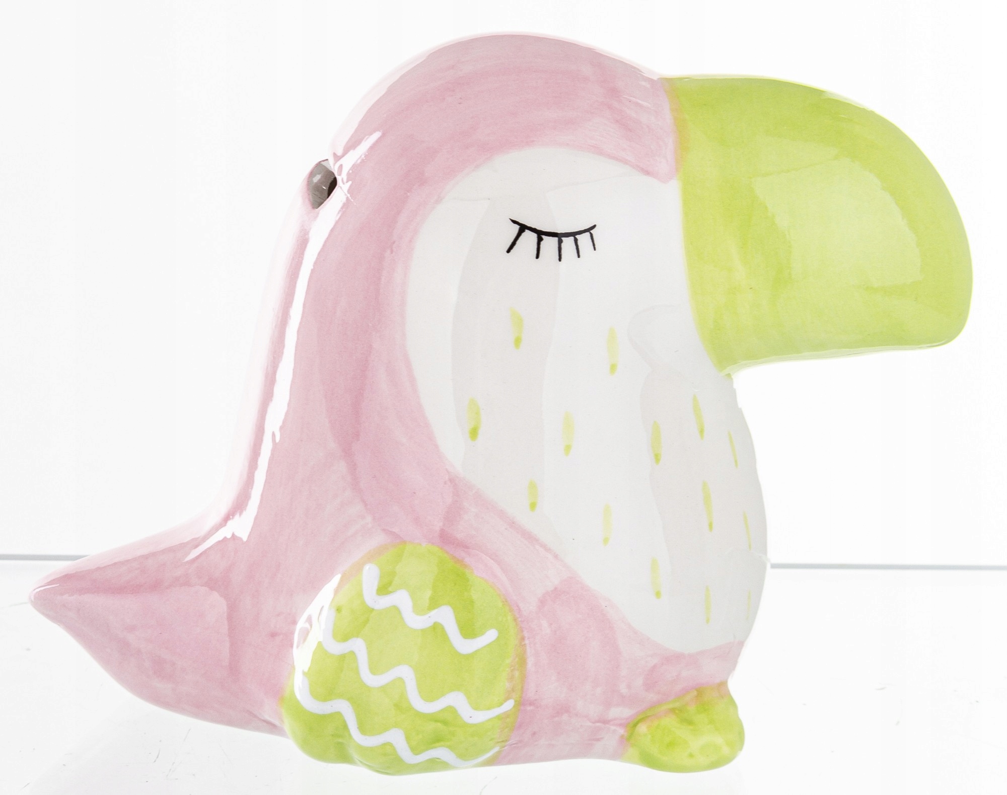 Представляем уникальную керамическую копилку в форме очаровательного тукана, которая восхищает пастельными тонами, нежным дизайном и утонченным декором. Это не только функциональный предмет для экономии денег, но и декоративный элемент, привносящий в интерьер легкость, цвет и положительную энергию.
