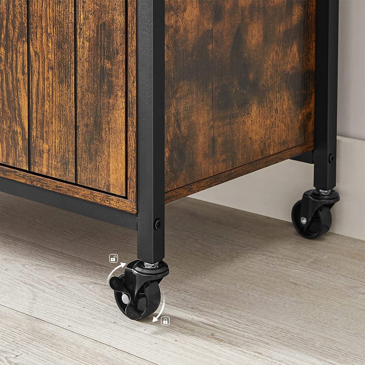 Комод можно прикрепить на колесиках (входят в комплект, два из них имеют тормоза), либо установить стационарно на регулируемых ножках.