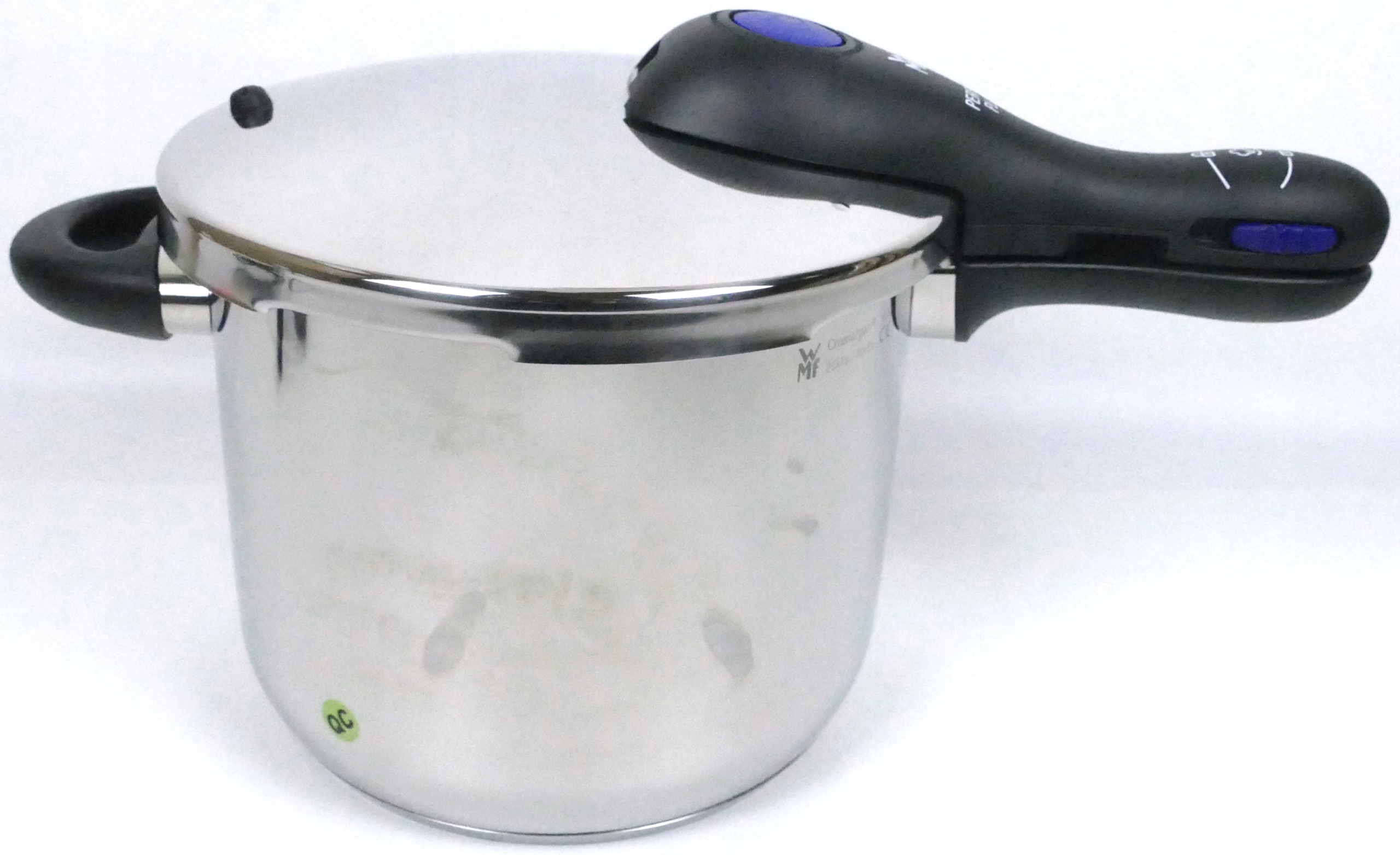 Практическая скороварка Вюртембергского завода металлоизделий (Württembergische Metallwarenfabrik), известная кратко как WMF, состоит из крышки с уплотнительным кольцом и корпуса емкостью 6,5 л.