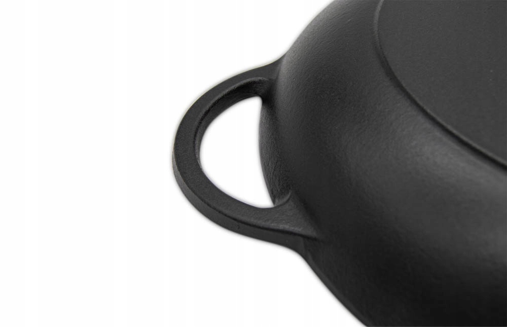 Универсальная сковорода изготовлена из натурального чугуна высочайшего качества и покрыта эмалью. Это идеальная посуда как для приготовления пищи дома, так и на природе. Чугун может достигать высоких температур одновременно не трансформируясь. Он прекрасно проводит тепло, что гарантирует нам быстрое и b>равномерно приготовленные блюда. Ручки, которыми оснащена сковорода, облегчают ее переноску.