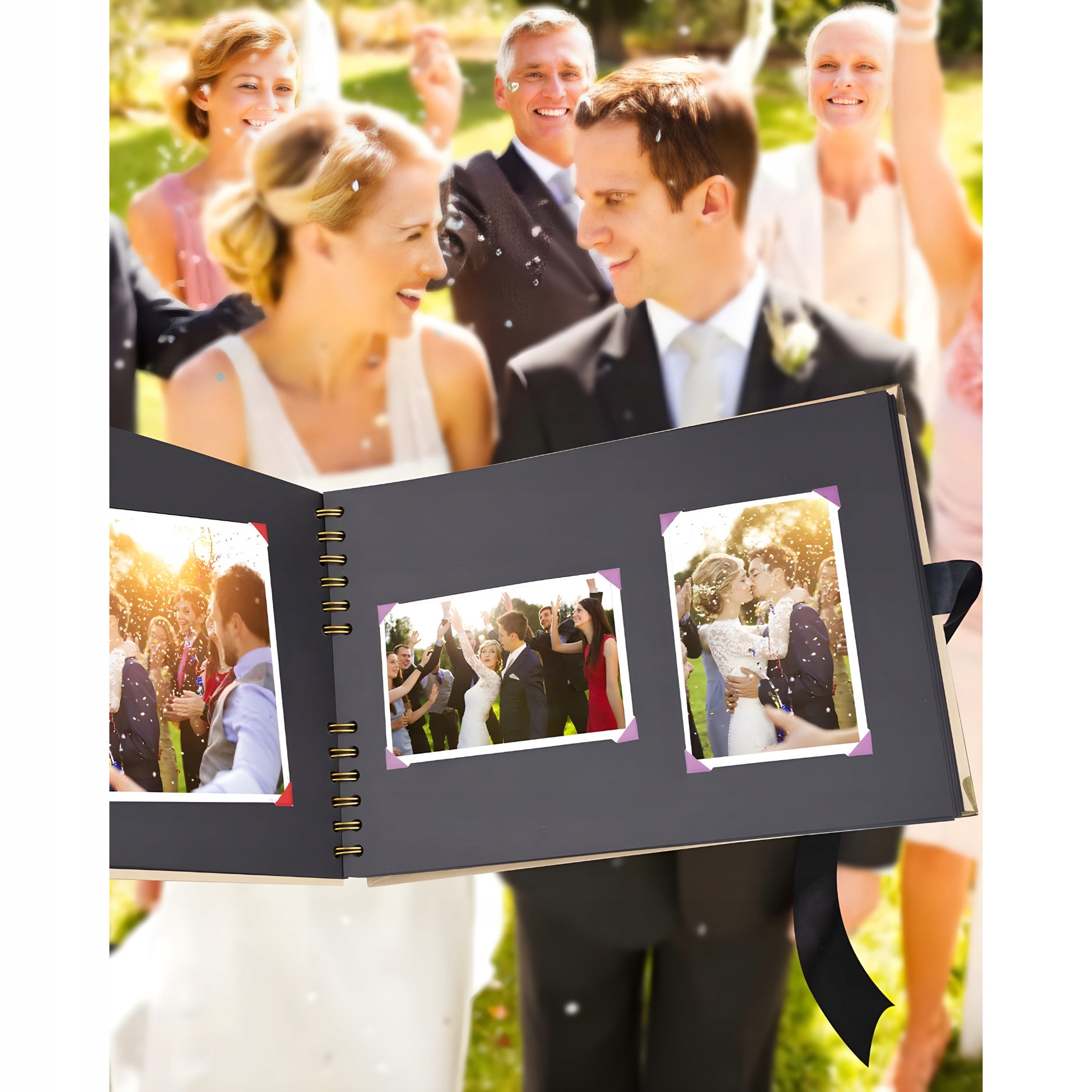 Быстро и эффективно наклеивайте фотографии с помощью ярких угловых наклеек (золото, розовый, черный прозрачный и другие).