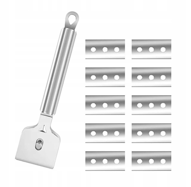 В комплект входит: 1 комплект (1 скребок для стеклокерамики и 10 сменных лезвий)