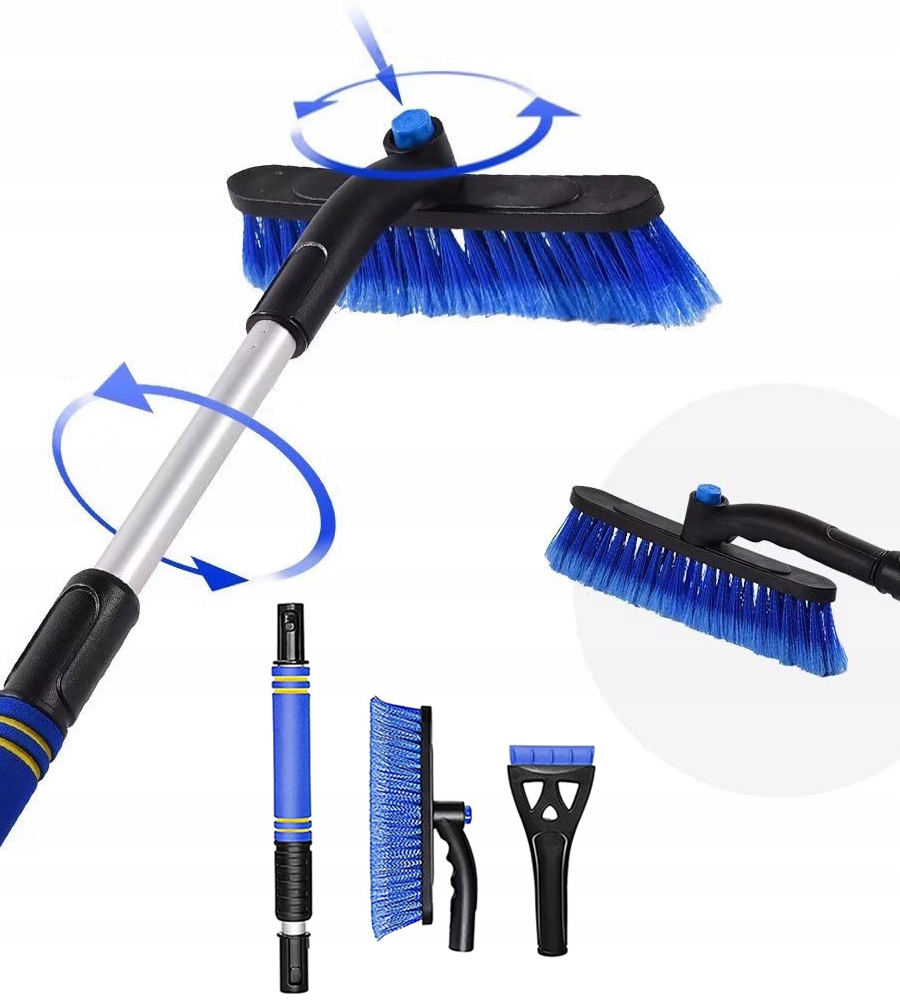 - Этот скребок для льда с поворотной головкой щетки можно разобрать на 3 отдельные части (щетку, скребок и шест), которые можно легко положить в багажник или сумку для удобного хранения и транспортировки. Головку щетки можно вращать на 360°.