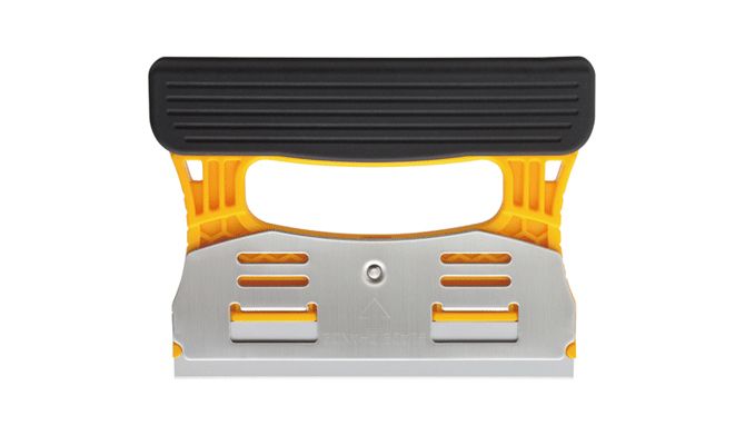 Пазы на желтой поверхности рукоятки и черная защита лезвия помогают надежно и удобно удерживать инструмент. Скребок очень легкий, весит всего 115 грамм