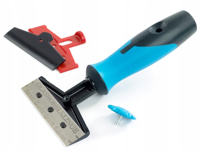 - Практическое и удобное в использовании, предназначенное для удаления постоянной грязи в виде: силиконовой, сухой краски, монтажного клея и т. Д. и безопасная система для замены подержанного лезвия.