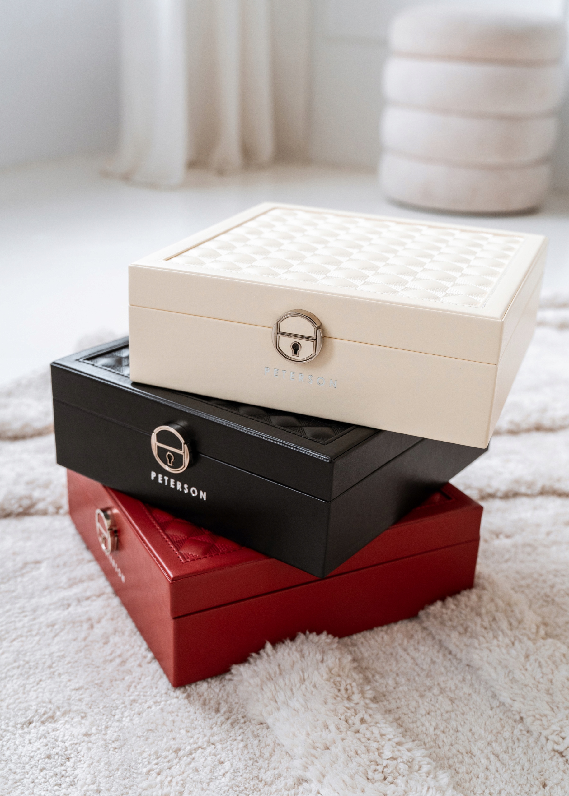 Коробка-органайзер для ювелирных изделий PETERSON, запираемая, вместительная, с большим зеркалом