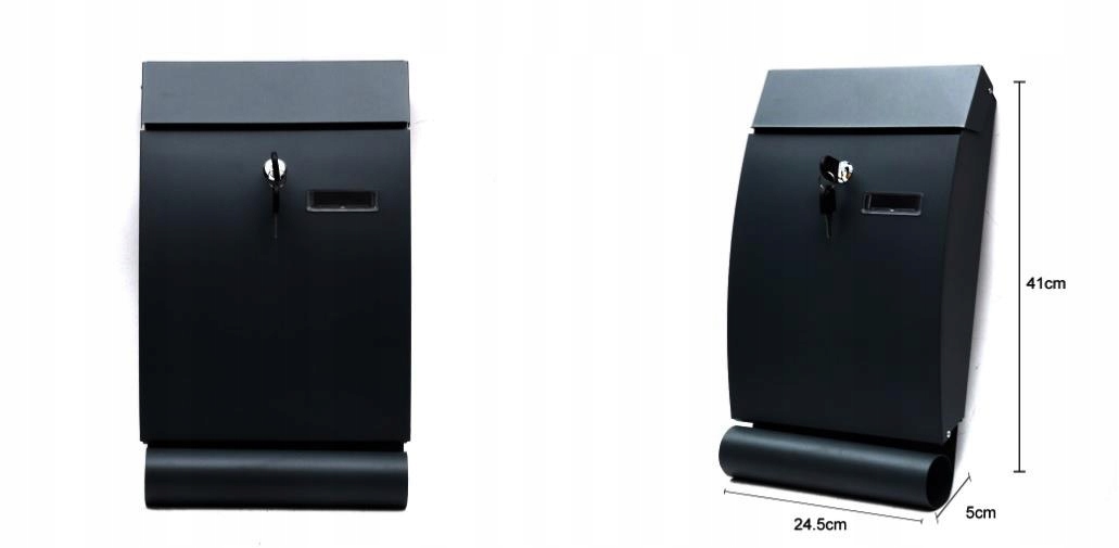 Скринька поштова, опукла, чорна матова, з підставкою для газет