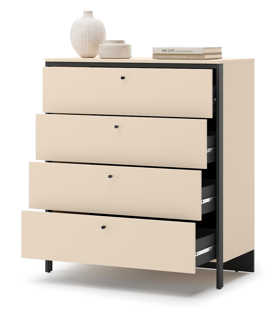 Грунт ящиков с четырьмя вместительными ящиками, которая является частью коллекции ENNA. Спроектирован как часть оборудования для спальни. Предоставляет дополнительное место для хранения одежды и аксессуаров. Преимущество продукта - светодиодная подсветка. Комол с ящиками для спальни сочетает в себе функциональность и элегантность. Это предмет мебели, который не только выполняет свою роль в качестве места для хранения одежды и постельных принадлежностей, но и подчеркивает уникальный характер интерьера, в котором она была размещена. Комол из коллекции ENNA предоставляет много места для сбора и отделения вещей, которые ежедневно находятся в нашей спальне. Это позволяет легко организовать пространство на нашем месте отдыха. Сплошная конструкция и тщательно отобранные материалы являются еще одним преимуществом нашего продукта. Крупник с ящиками для спальни - это решение, которое облегчает организацию пространства и придает спальне уникальное очарование.