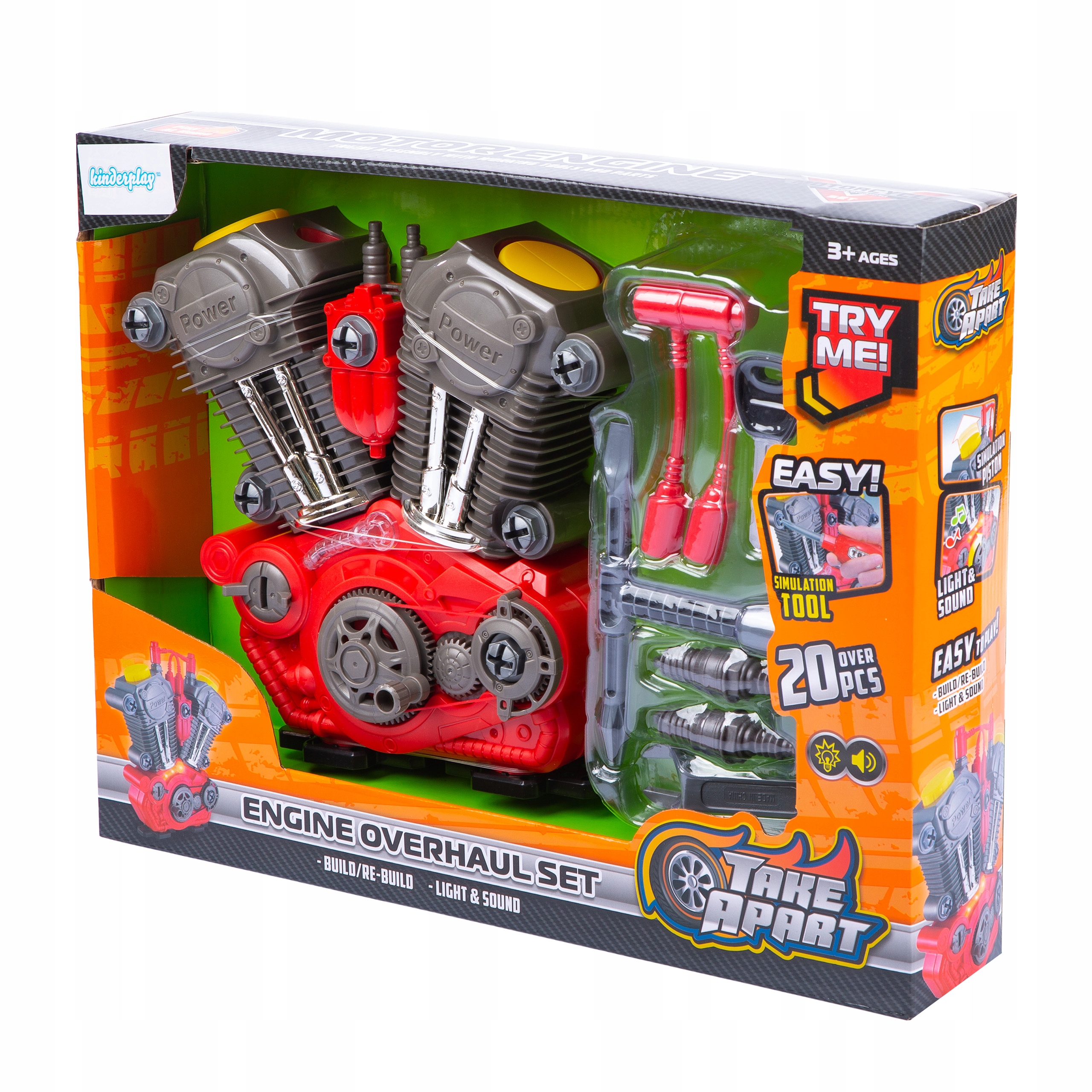 Отличный набор для каждого молодого механика, обнаружив секрет двигателя внутреннего сгорания и правила транспортного средства, движущегося по пути. Набор является предложением для будущих автомобильных очарований.