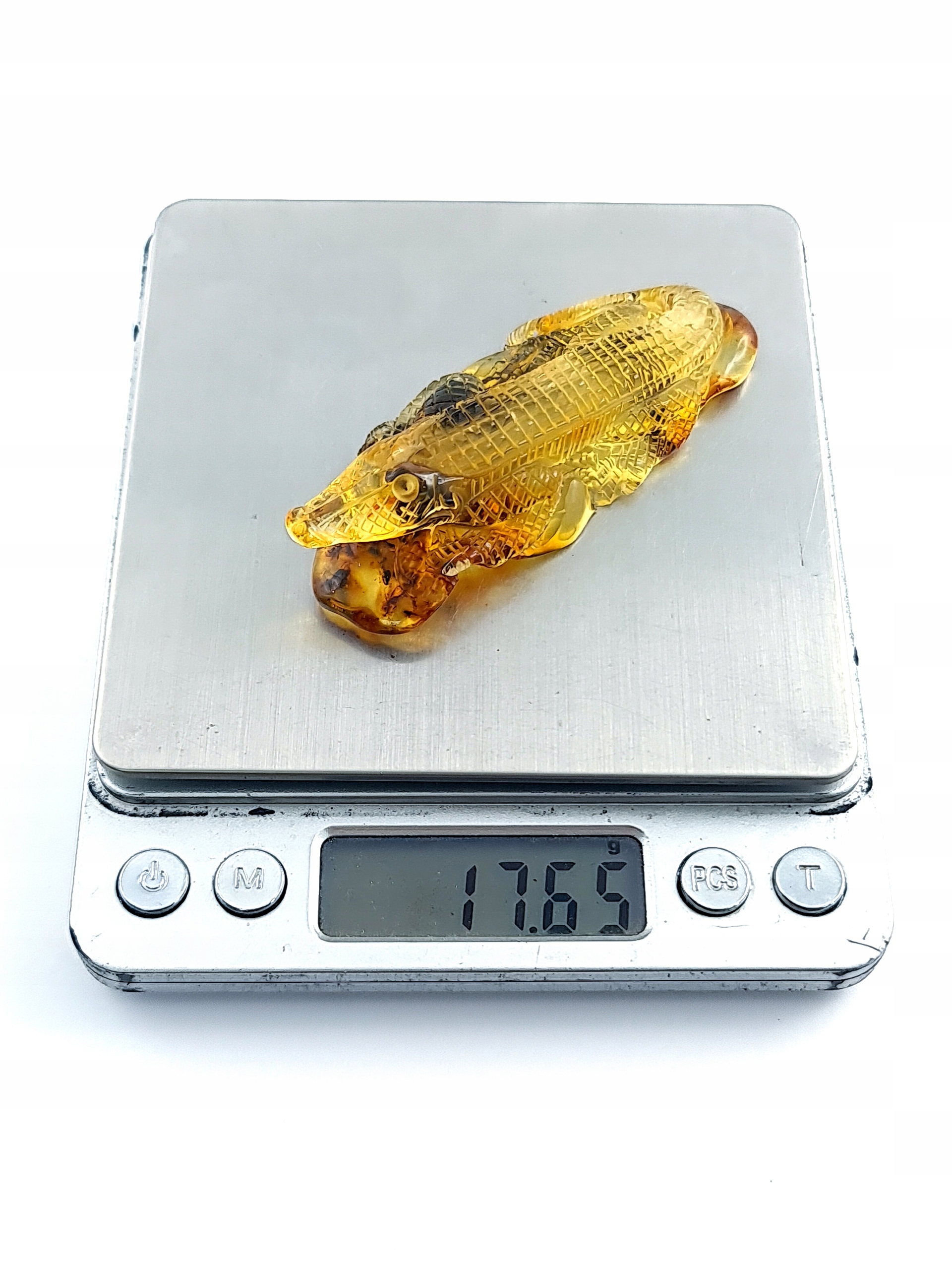 Красивая скульптура аллигатора ручной работы из одного куска 100% натурального янтаря. Точная, тонкая работа с деталями!