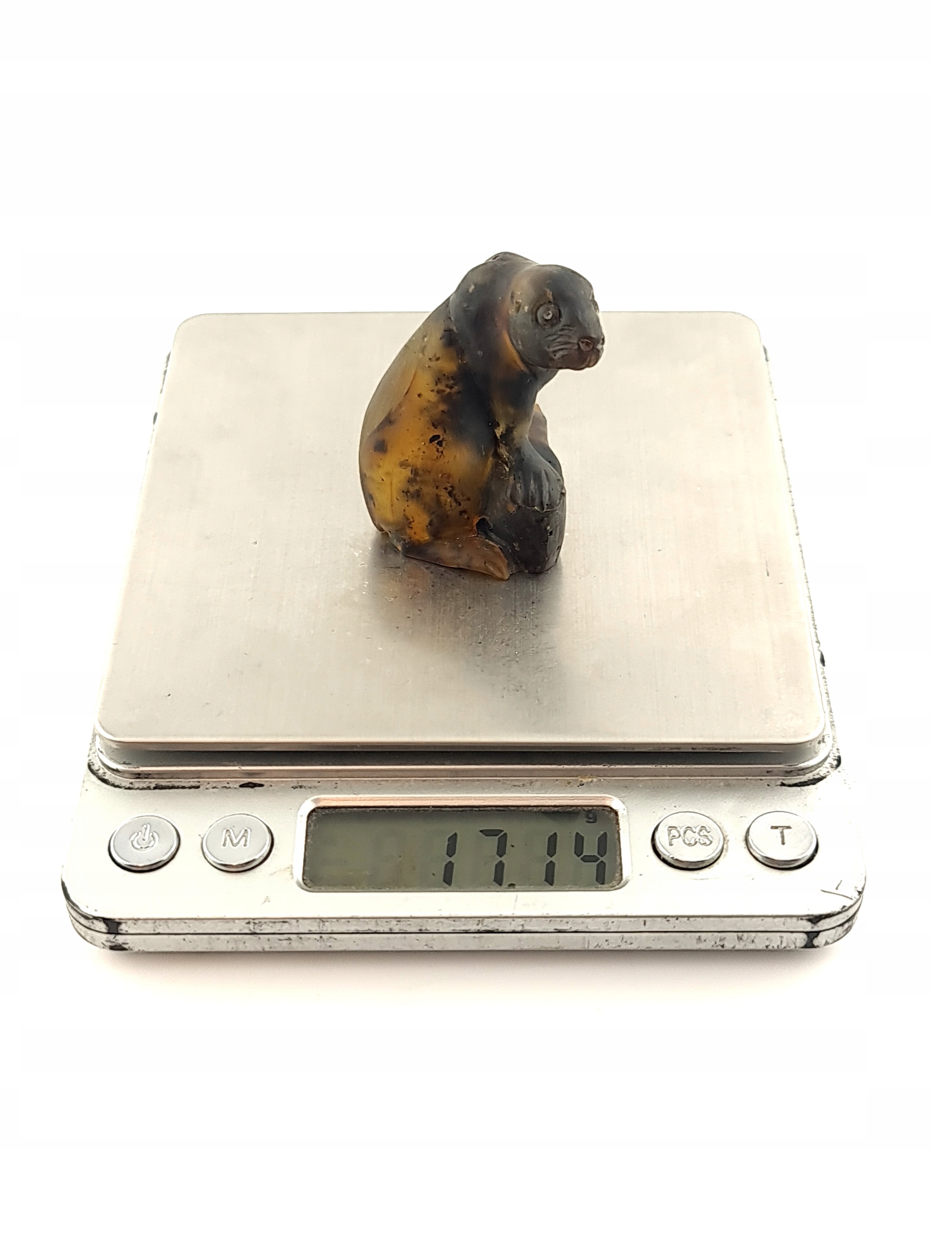 Красивая, замысловатая, ручная скульптура тюленя из цельного куска 100% натурального камня, Прибалтика б> янтарь. Точная работа с деталями!