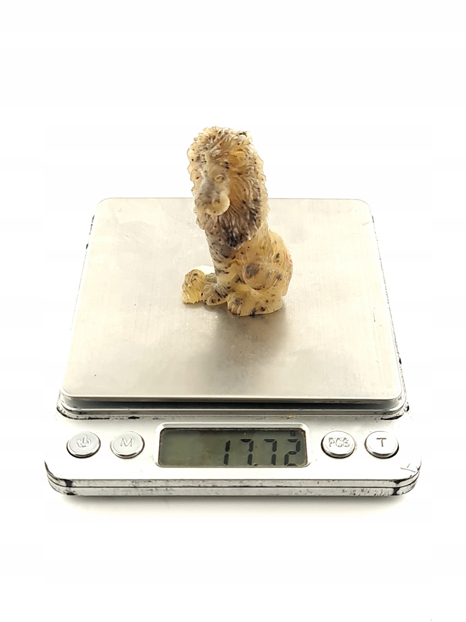 Красивая, замысловатая ручная скульптура льва, выполненная из одного куска натурального балтийского янтаря. Точная работа с деталями!