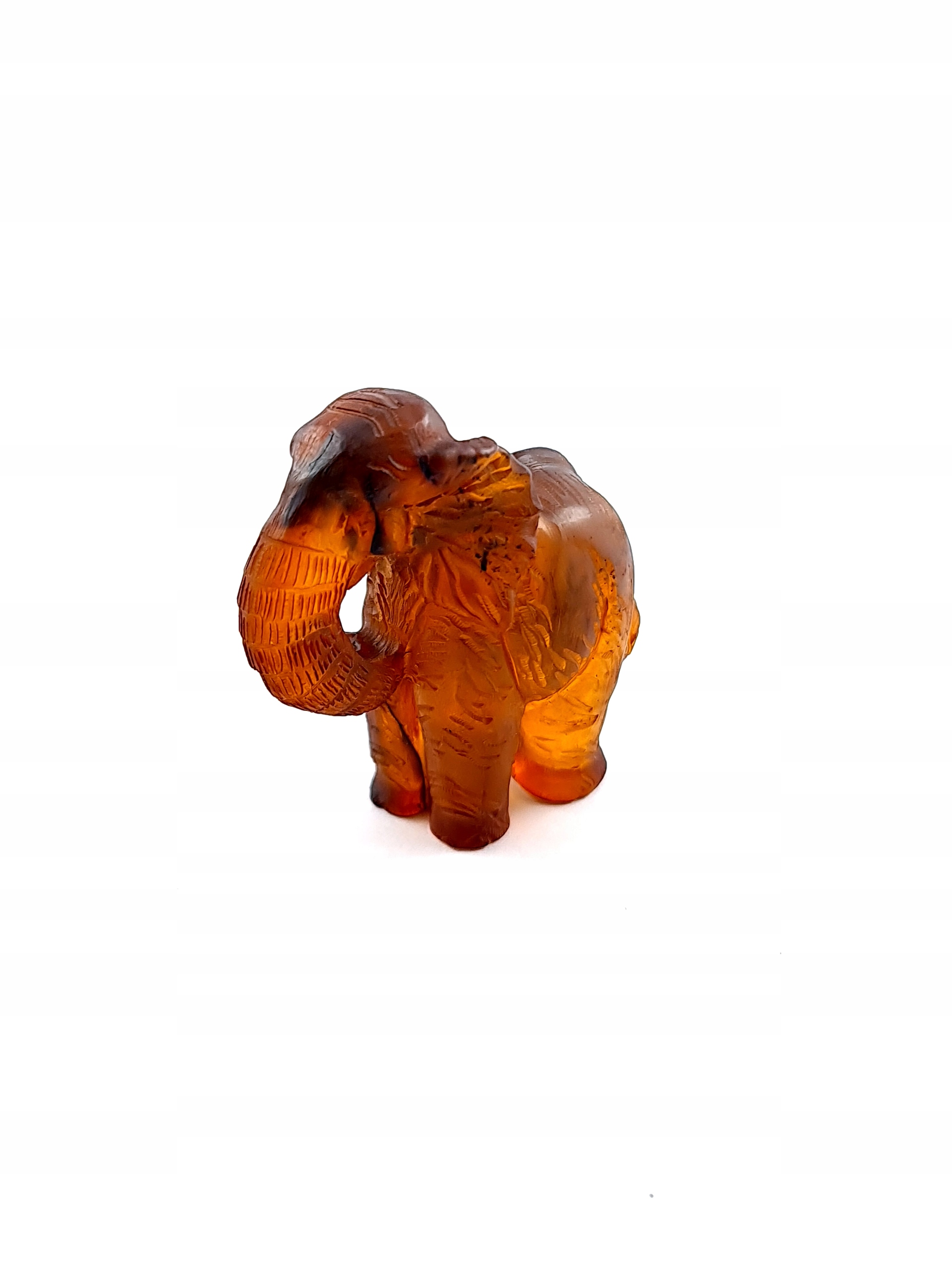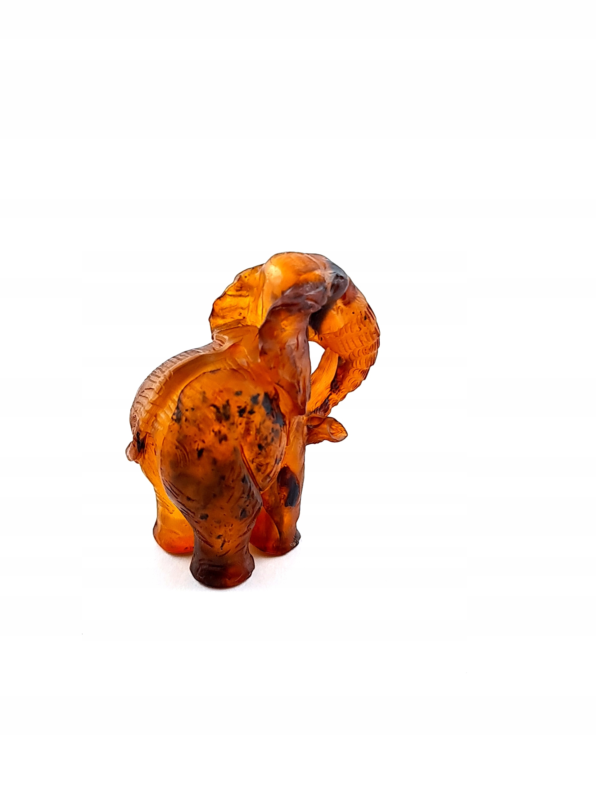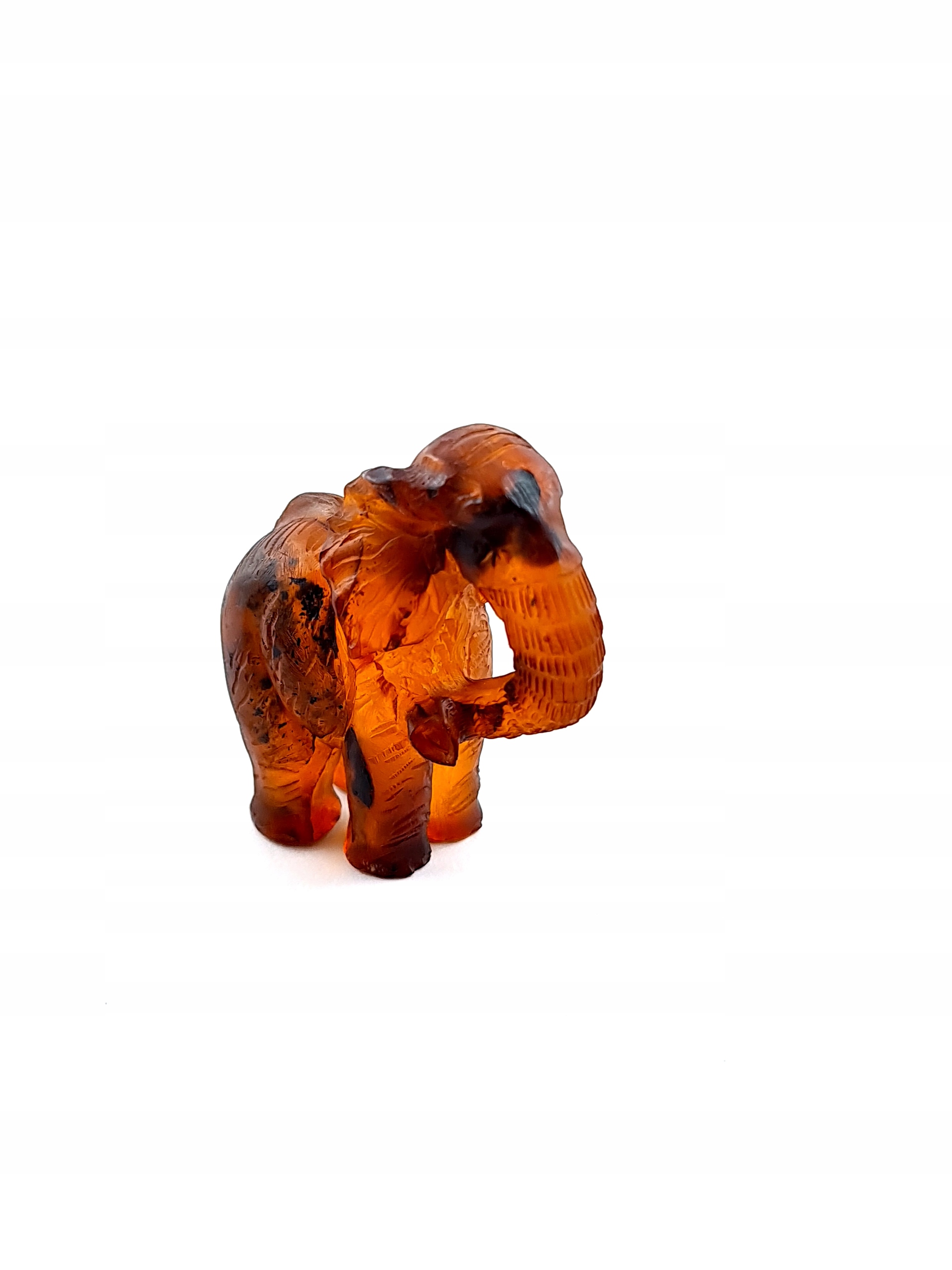 Красивая, замысловатая скульптура слона ручной работы, изготовленная из цельного куска 100% натурального балтийского янтаря. Точная работа с деталями!