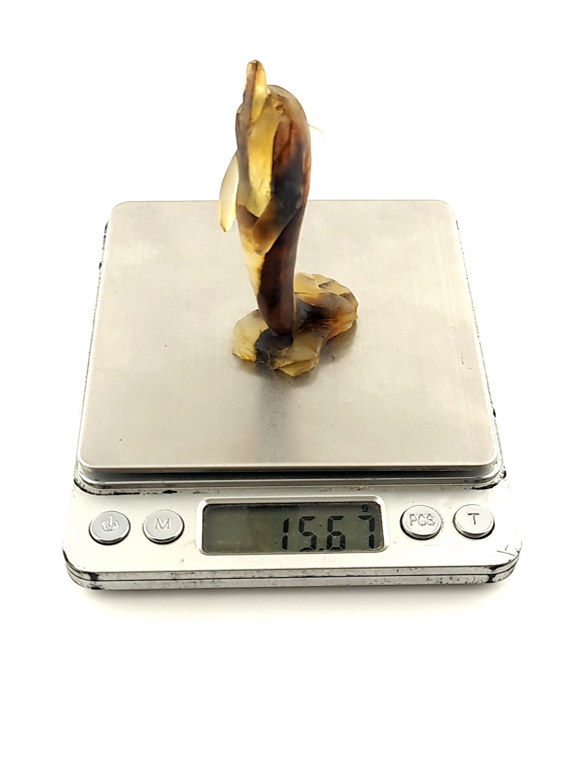 Красивая, замысловатая, ручная скульптура дельфина из цельного куска 100% натурального камня, Прибалтика > янтарь. Точная работа с деталями!