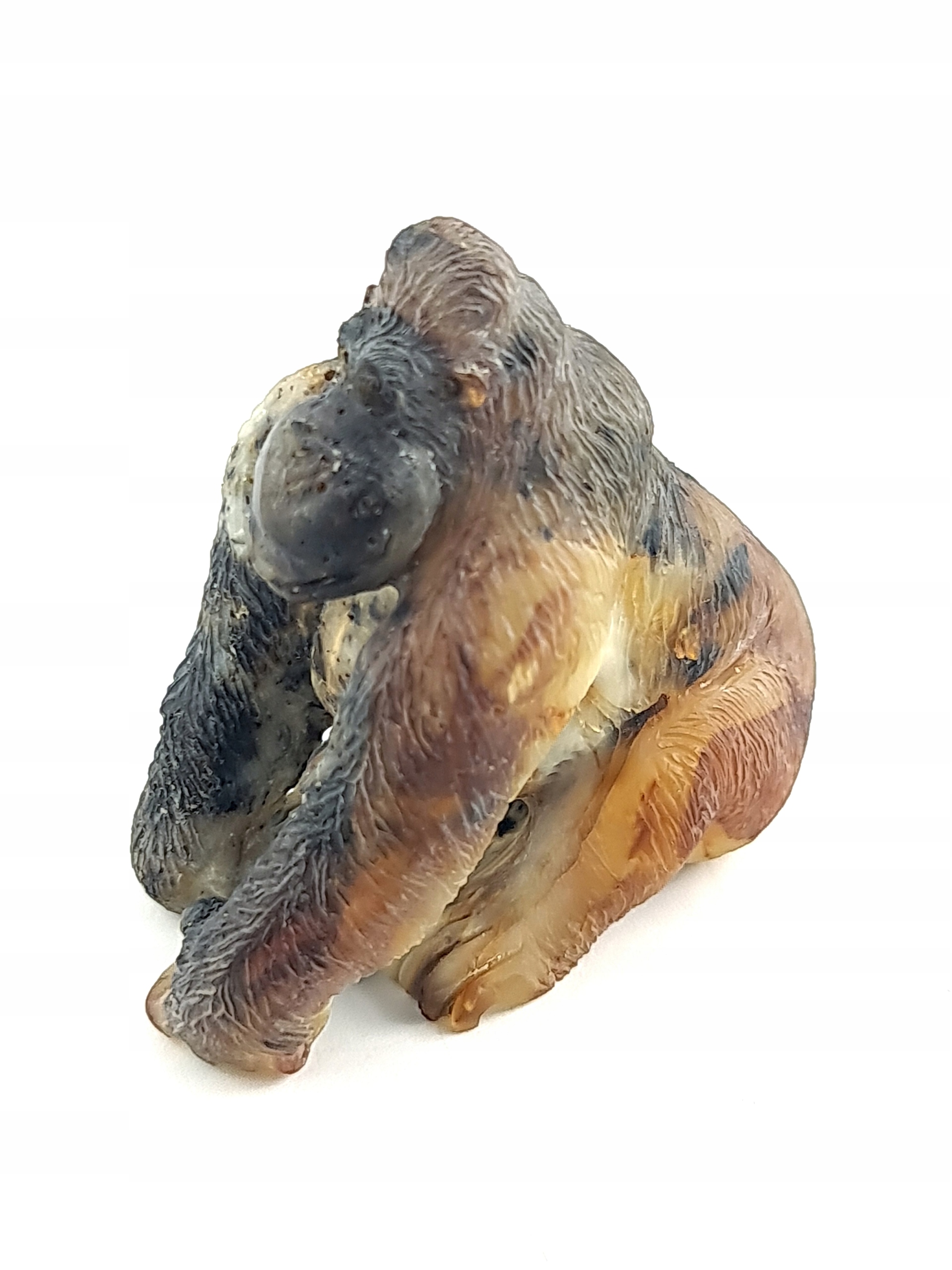 Красивая, замысловатая, ручная скульптура гориллы, сделанная из одного куска натурального балтийского янтаря. Точная работа с деталями!