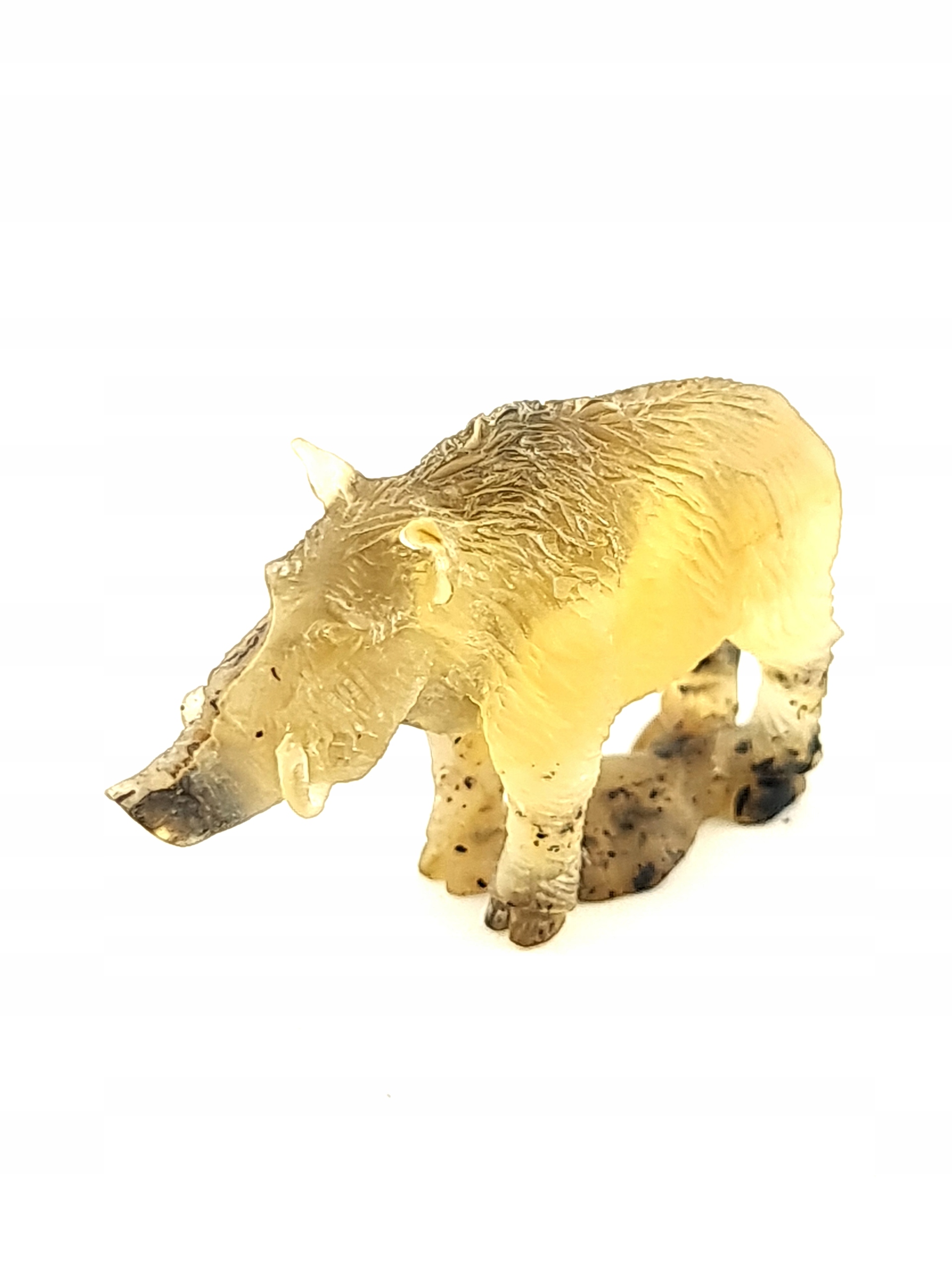 Красивая, замысловатая скульптура кабана ручной работы, изготовленная из цельного куска натурального балтийского янтаря. Точная работа с деталями!